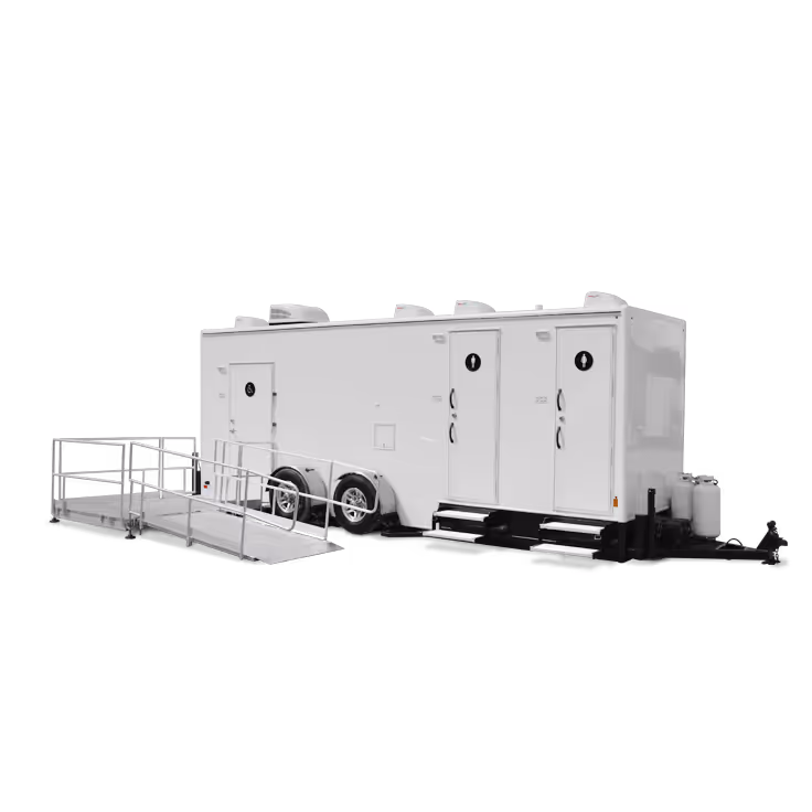 Portable Restrooms have various accessories to fit different scenarios, such as flushing, shower configurations, in-unit handwash and sanitizers stations. Portable restrooms provide reliable sanitation that can last for weeks or months.