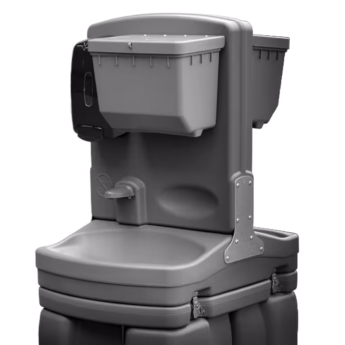 These portable handwashing stations are free-standing, which means that they can be brought in, set up, and used in virtually any location where they are needed. Each station here carries its own set of benefits which make them adaptable to your needs and the needs of the operators. These units are all foot operated with vandal-resistant molded spigots and large cutouts even for work boots. Built-in spray soap dispensers and paper towel dispensers complete the package.