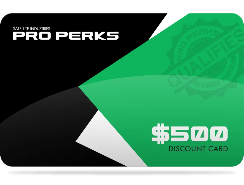 To earn and use ProPerks Points, keep your account active and in good standing with Satellite Industries, Inc. This means no past due balances and on-time payments. Delinquent accounts may lose access to the program and forfeit points.