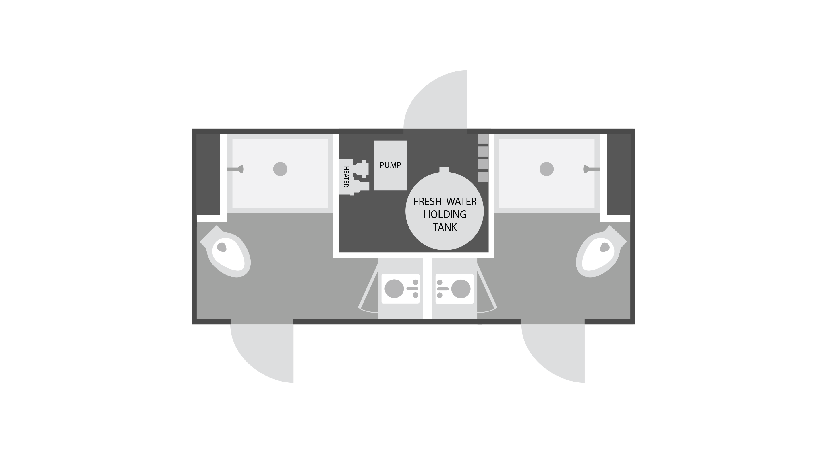 This spacious 2-Station shower trailer has a delightful interior and enough capacity to provide up to 350 guests a true first-class experience.