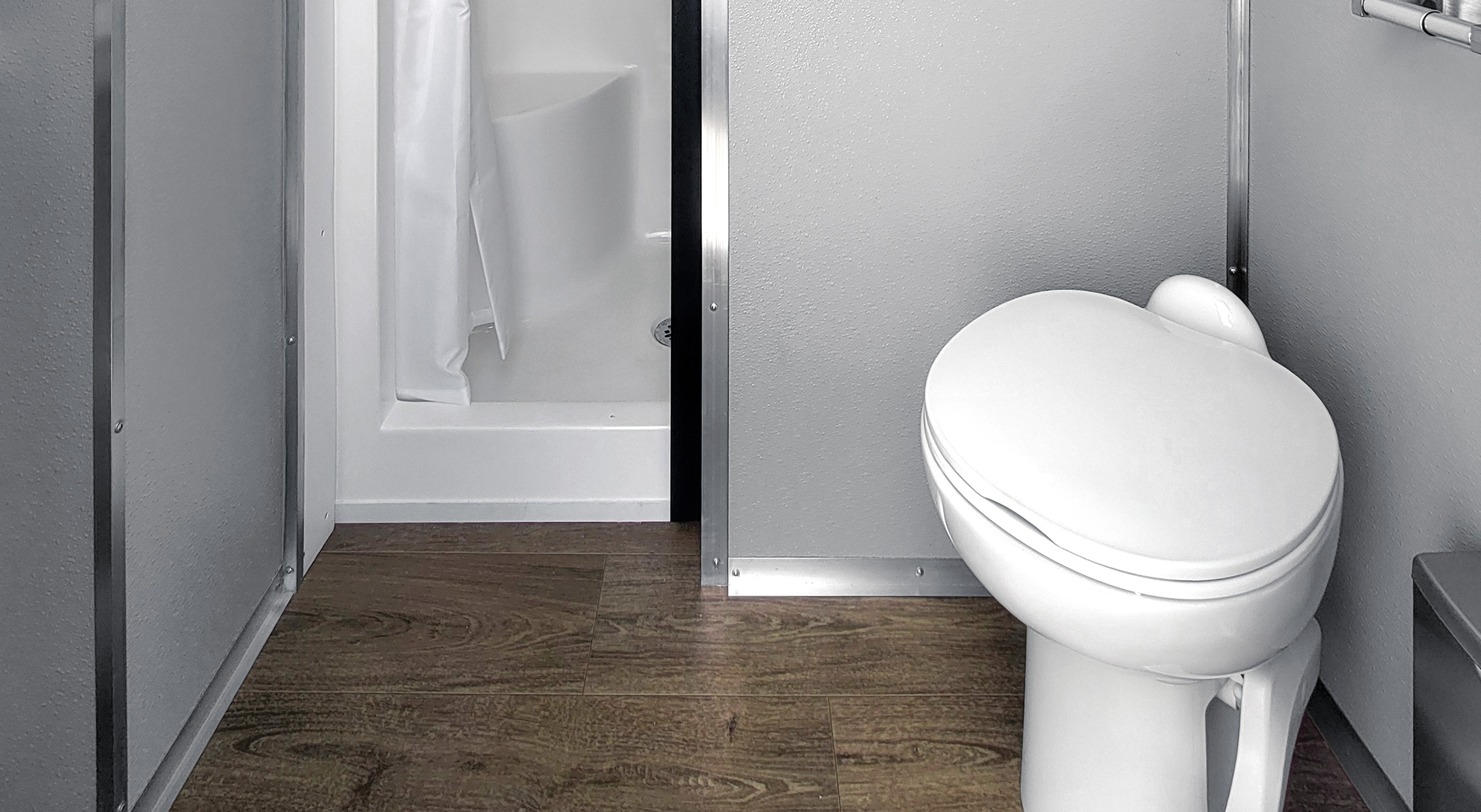 The shower trailer’s soft interior colors and spacious floor design create a wonderful experience for guests. It is a refreshing atmosphere away from the noise and crowds. Beneath, on top and around the spa-like interior is a non-wood structure that is lightweight and moisture proof, eliminating the threat of unwanted odors, mold and possible extensive rotting.