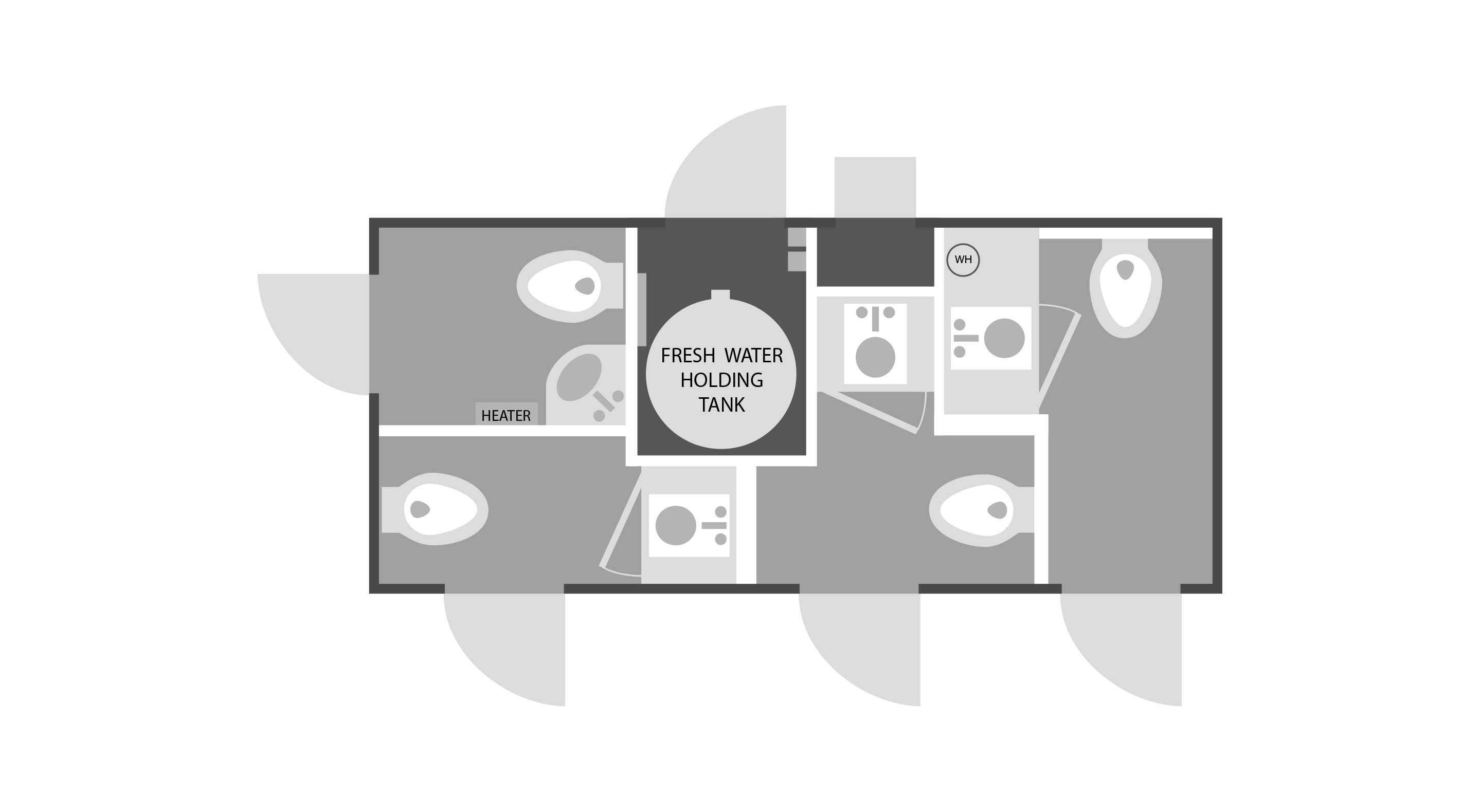 This spacious 4-Door, 4-Station restroom trailer has a delightful interior and enough capacity to provide up to 350 guests, a true first-class experience.