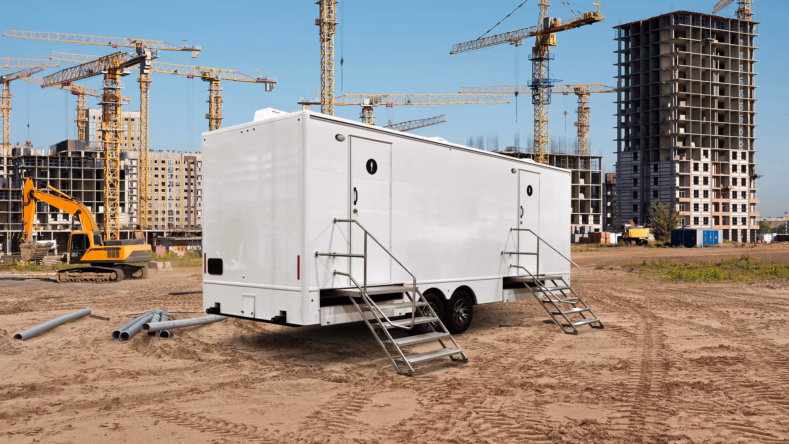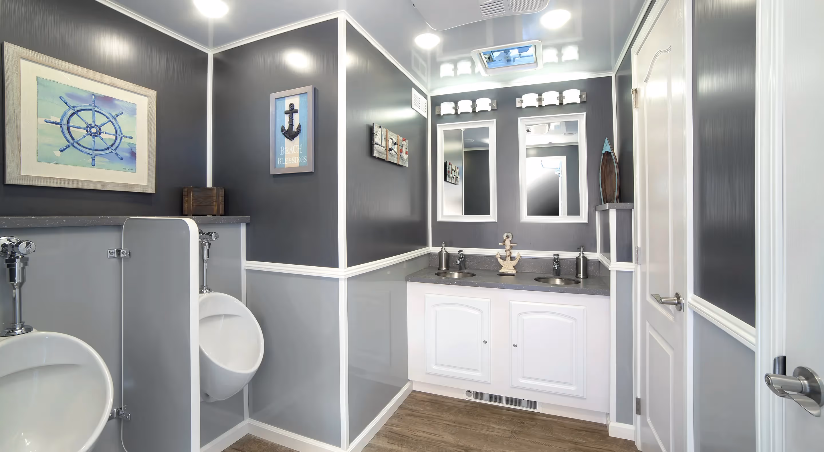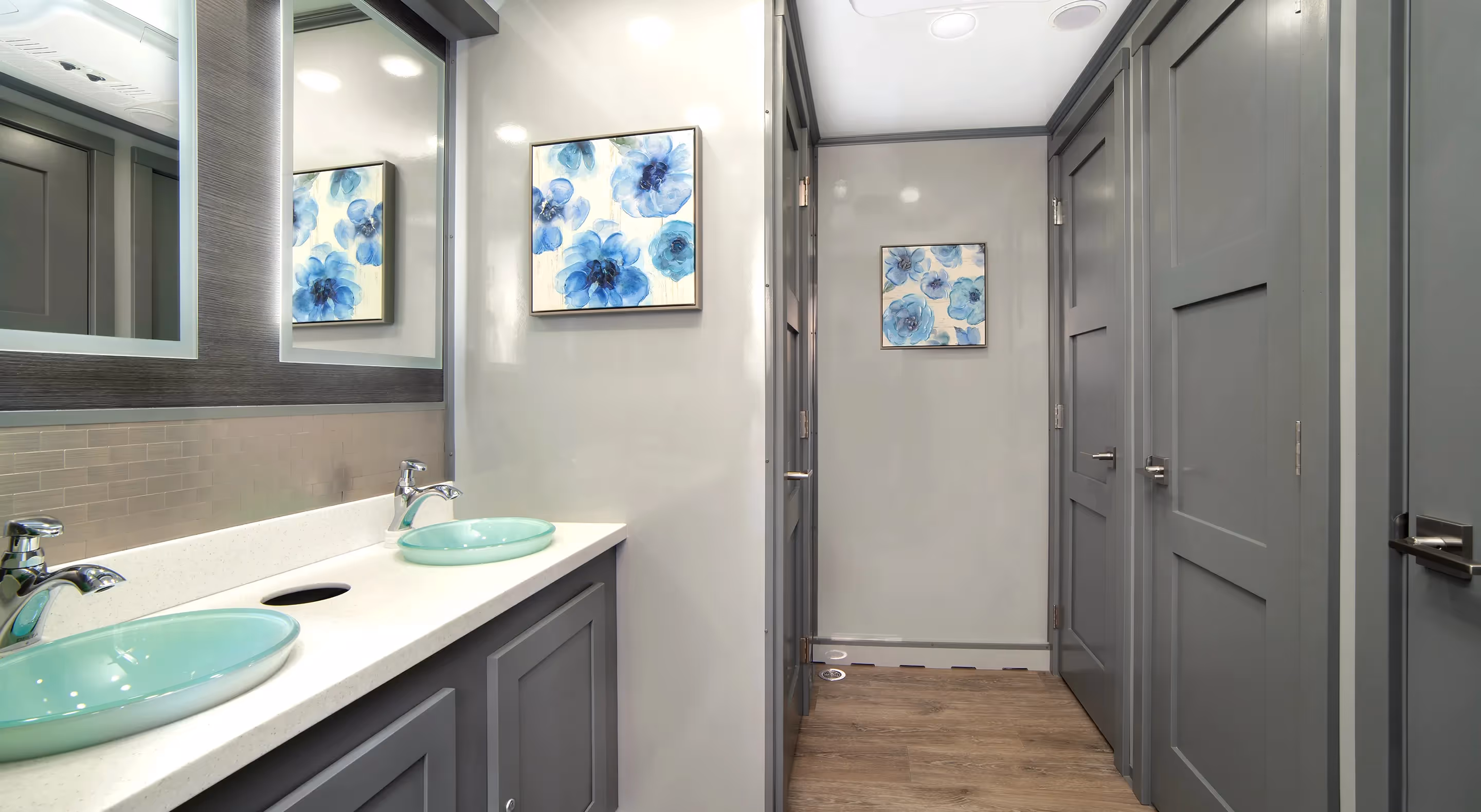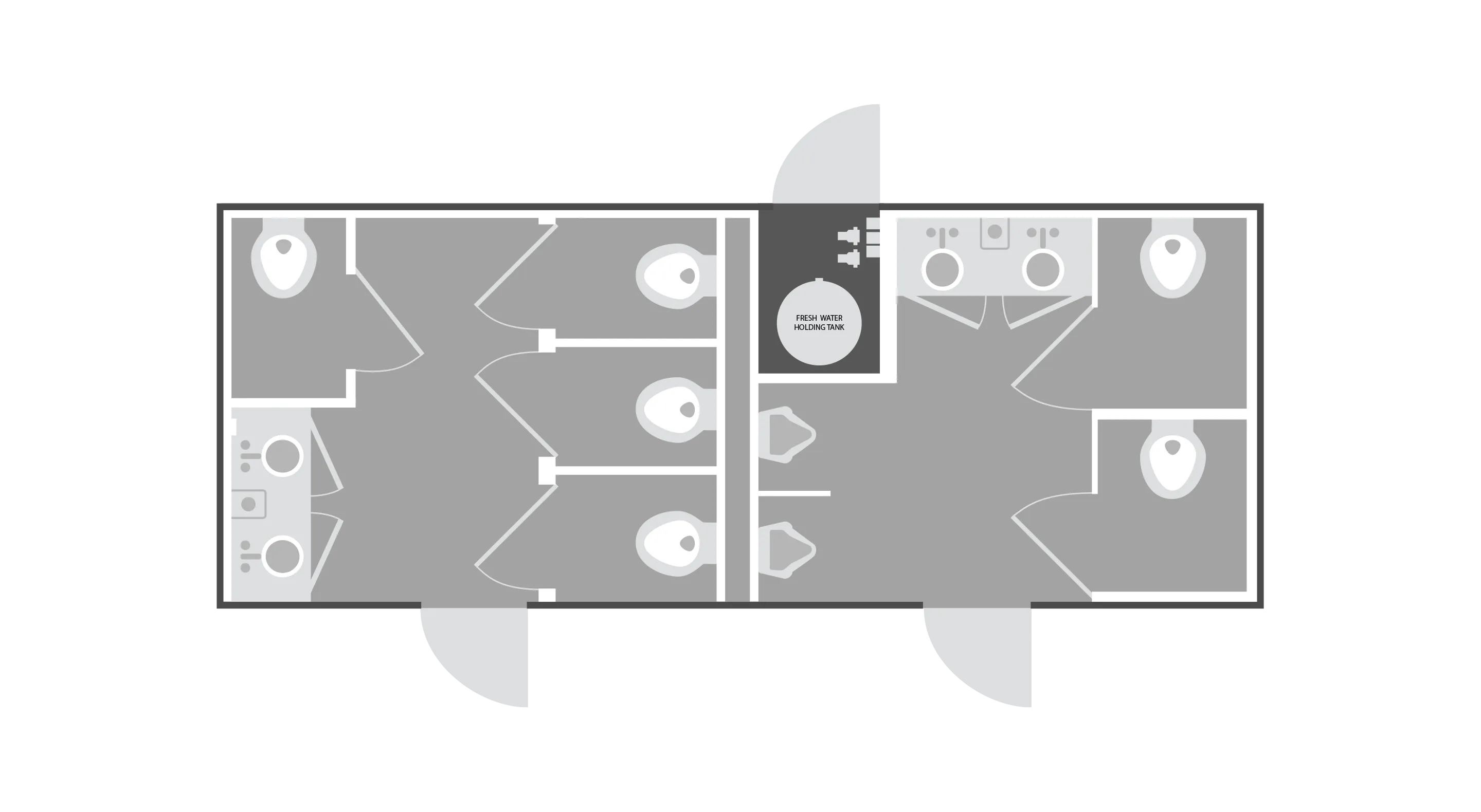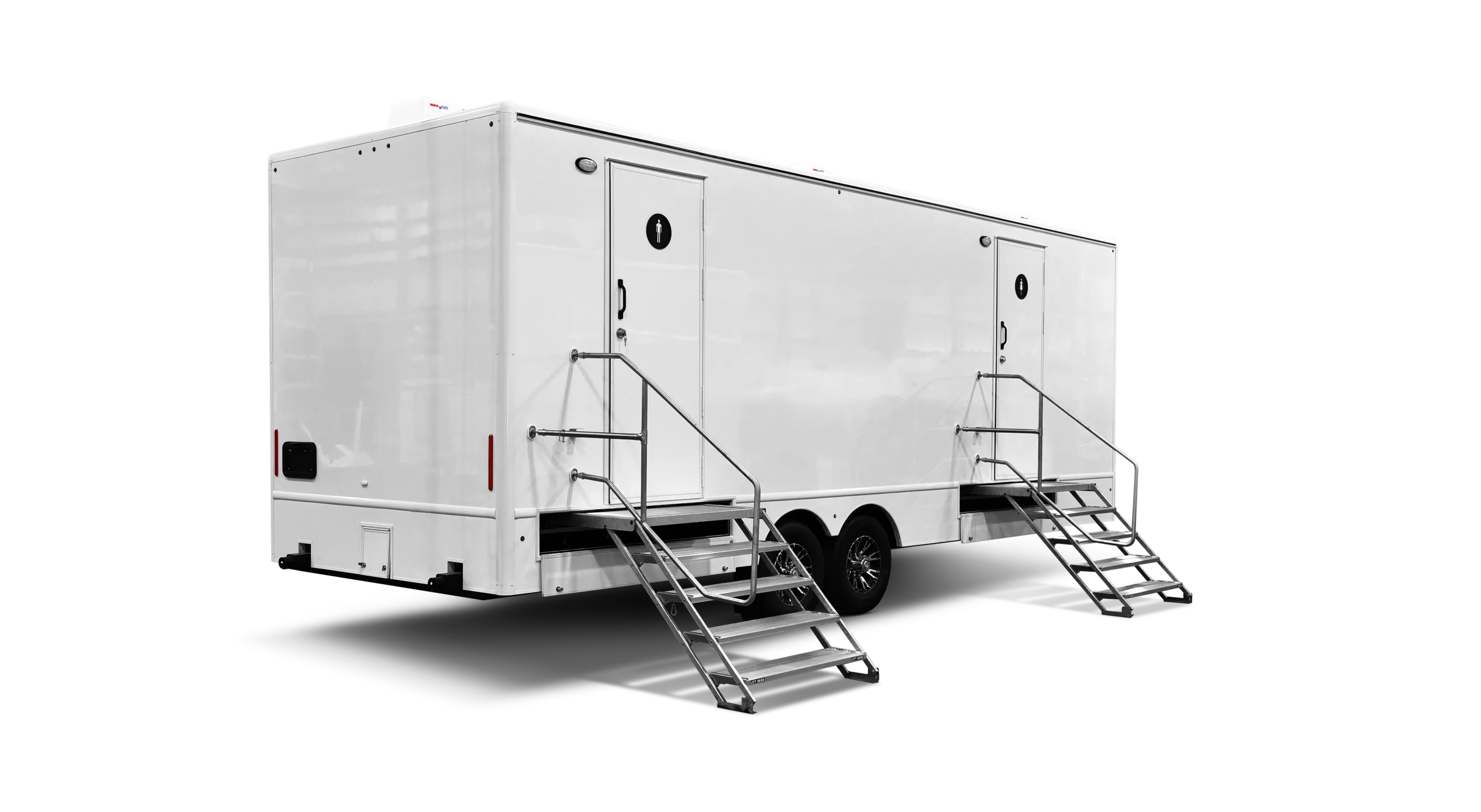 Lightweight, spacious and beautiful describe this 20’, 8-Station portable restroom trailer designed for both operators and end-users. Weighing less than 8,500 pounds, this restroom trailer is a pleasure to transport and simple to place and set-up.