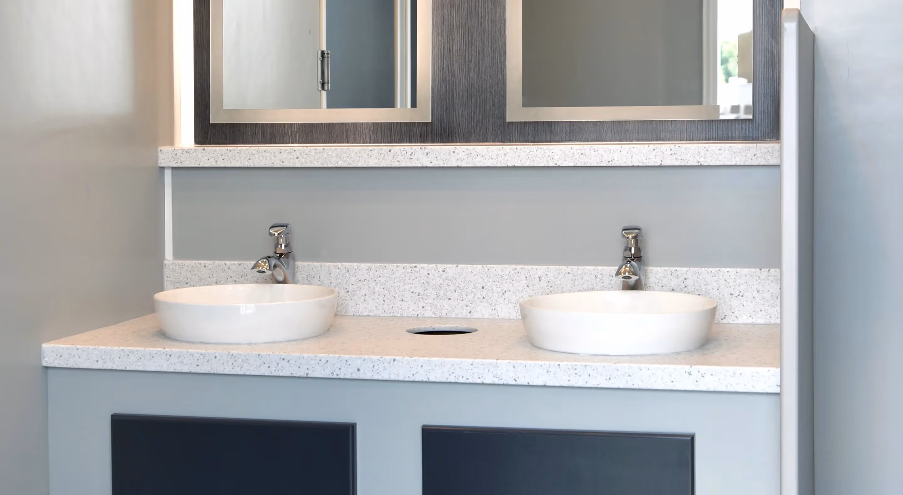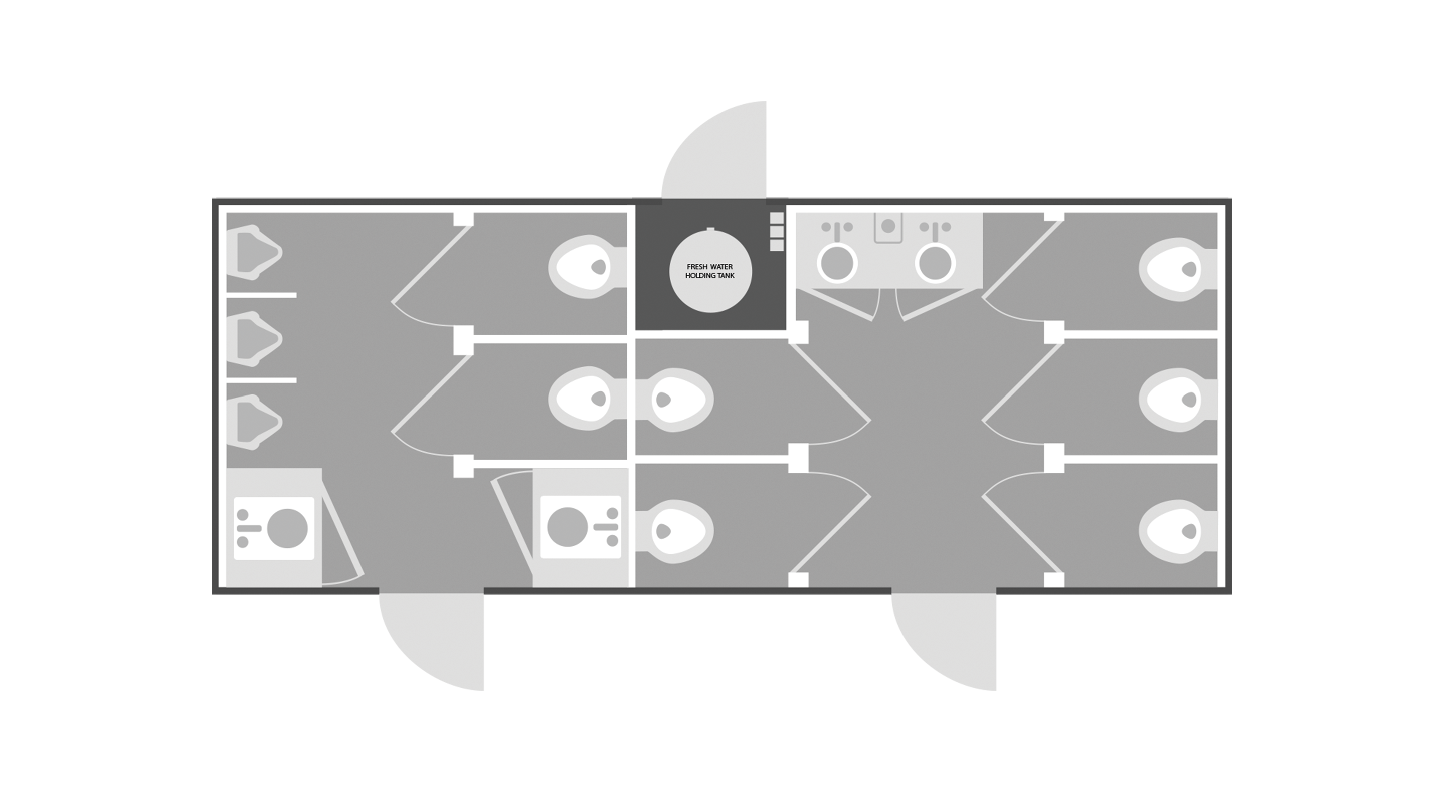 Inside, the ladies area has five spacious stalls and a twin-basin vanity. For the men, there are two private stalls, three urinals and a twin-basin vanity. The climate in each area can be controlled by individual air conditioning units to insure total comfort.