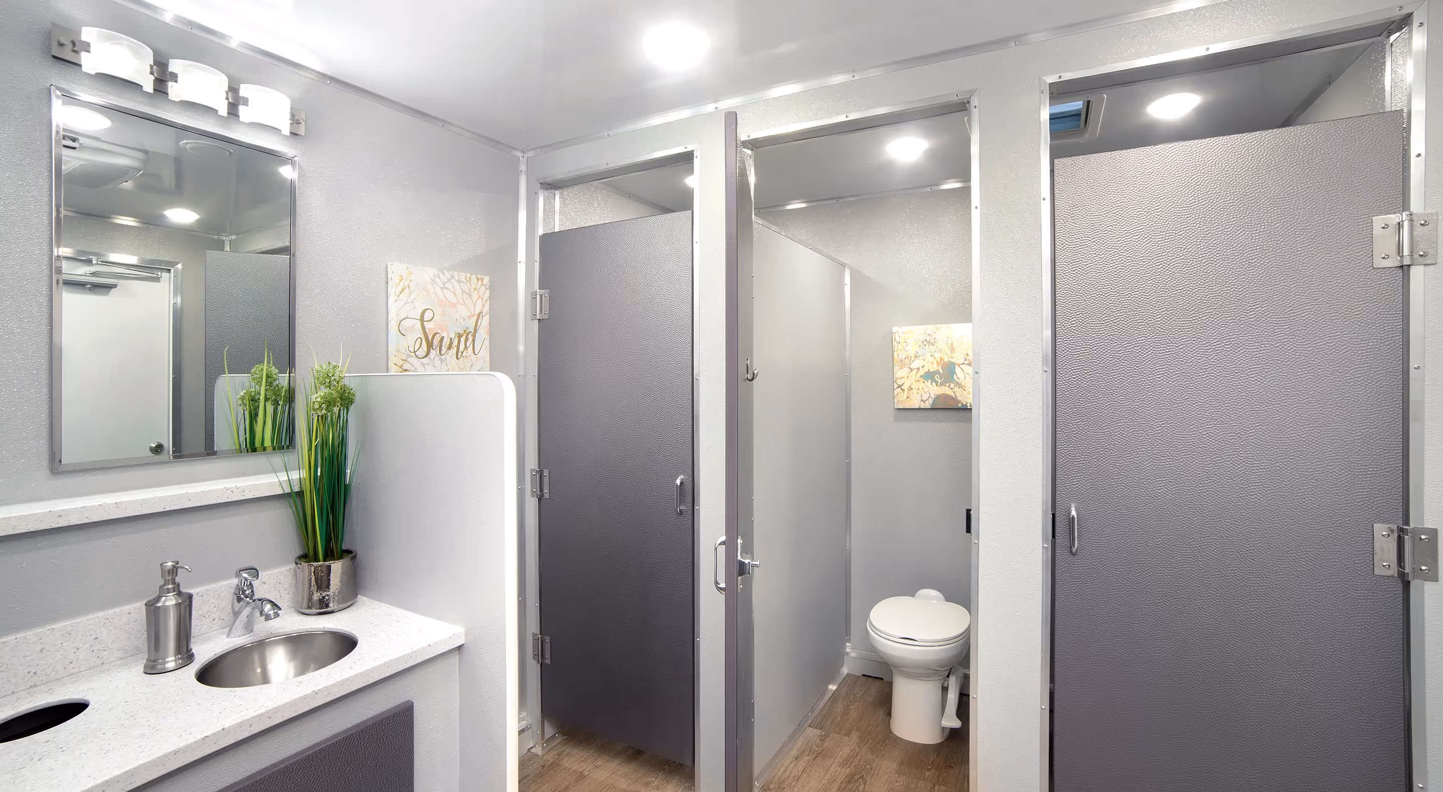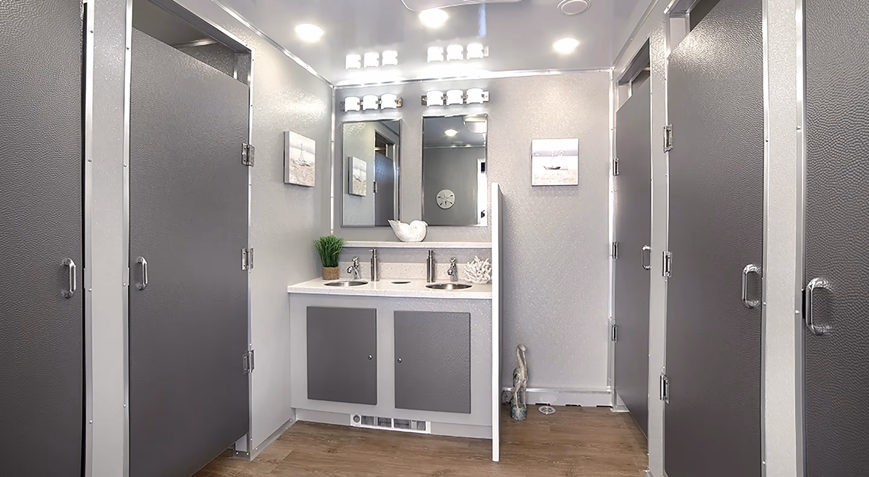 Lightweight, spacious and beautiful describe this 25’, 10-Station portable restroom trailer designed for both operators and end-users. At about 9,800 pounds, this restroom trailer offers effortless transport and quick, easy setup.