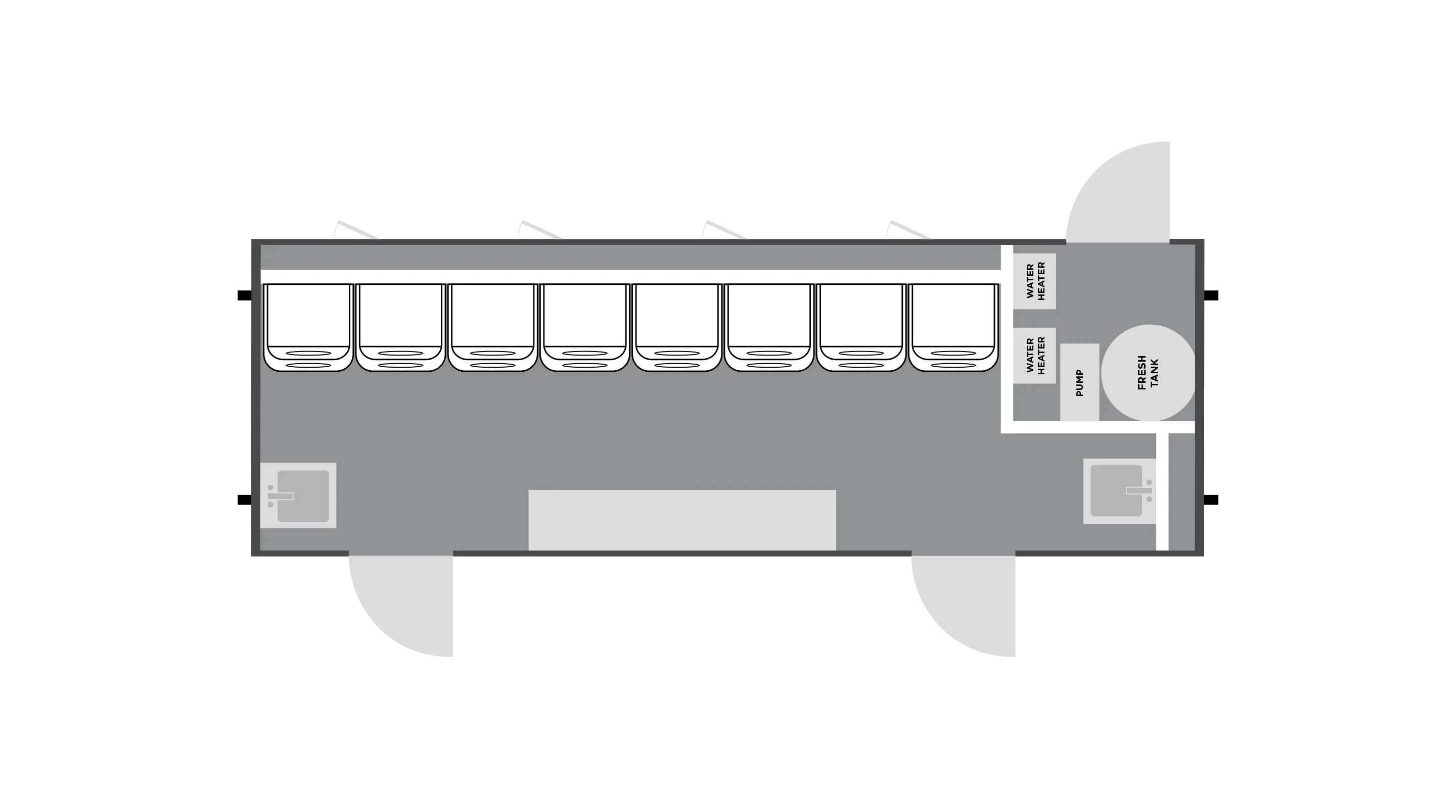 - Freshwater: 200 gal + freshwater connection