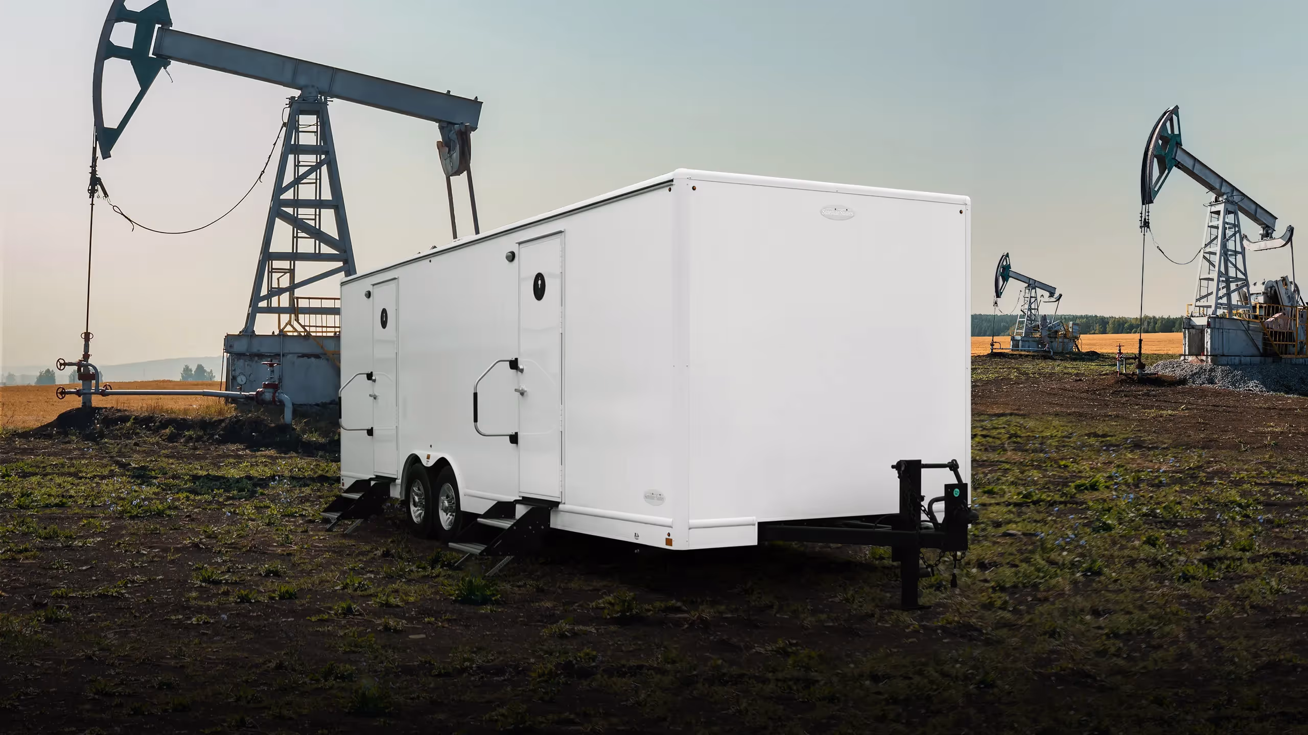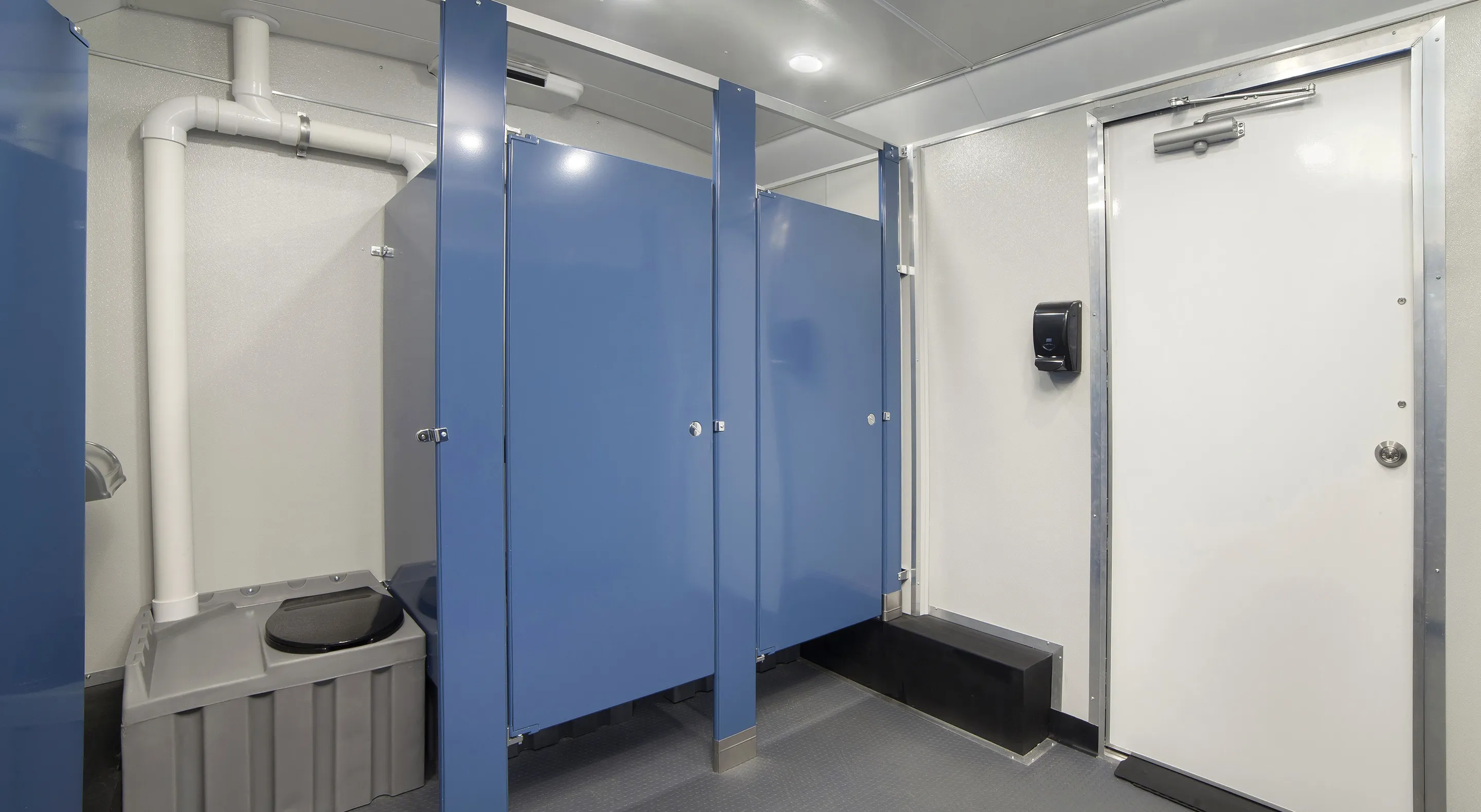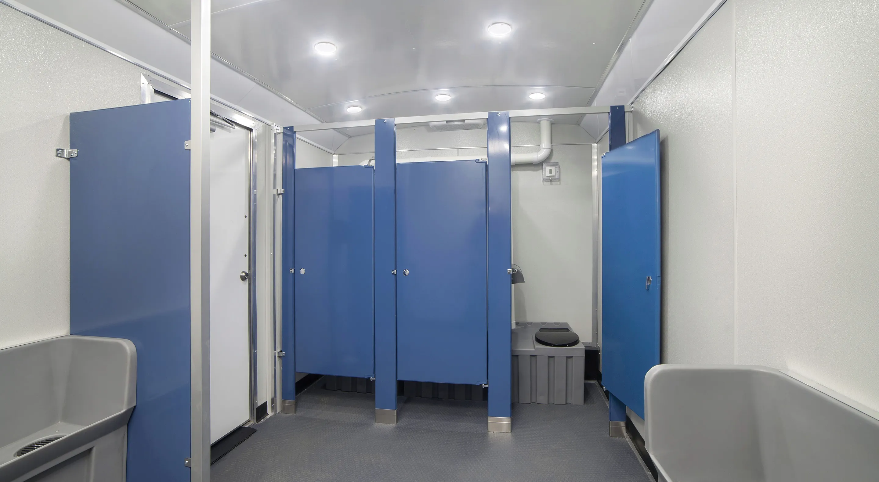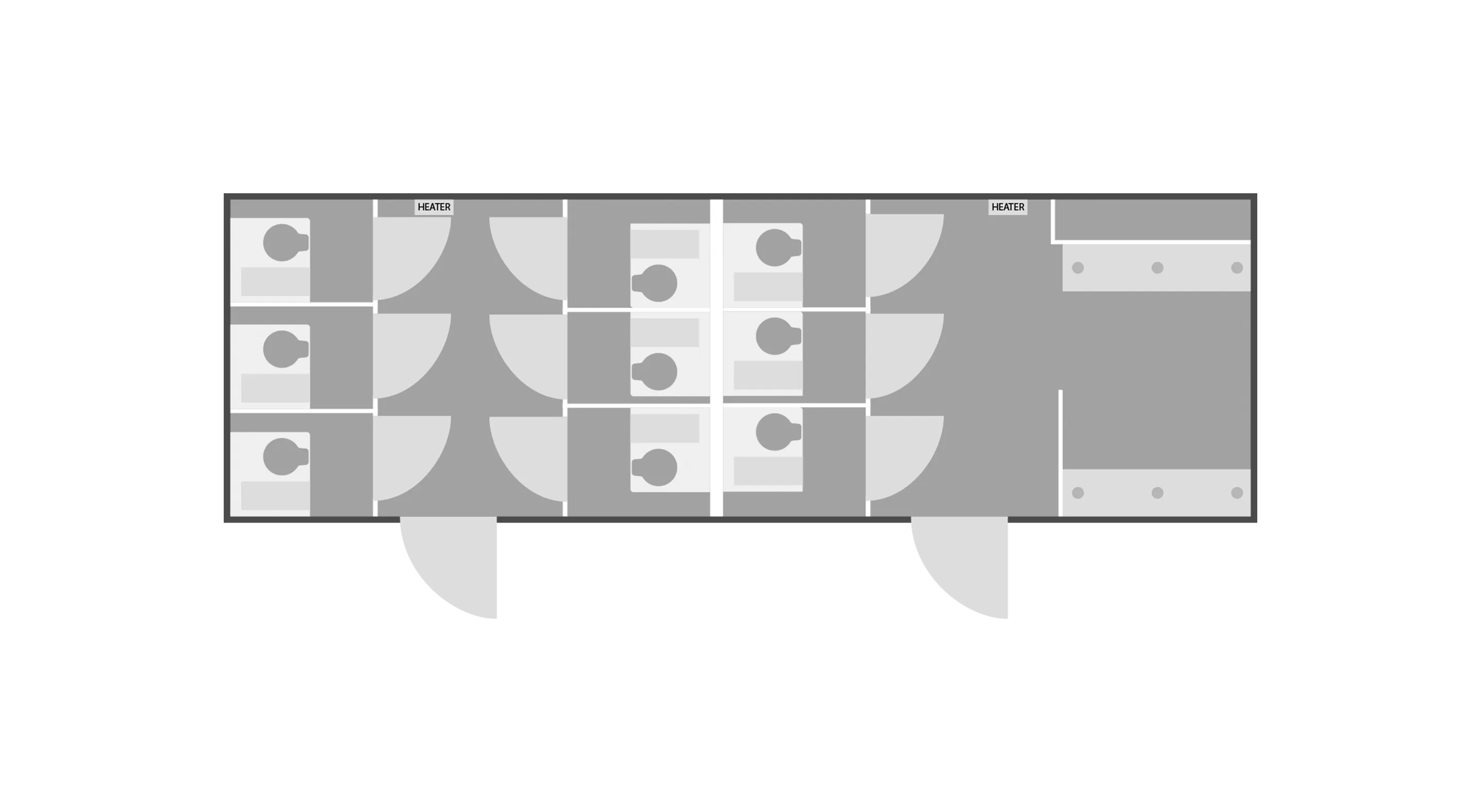 Satellite Suites has created a beautiful 26-foot, two-door, 15-station trailer for high traffic rural events, construction sites, and oil field operations. The RoughneckTM uses our portable restroom urinals and tanks, eliminating the need for running water and cutting down the amount of time between services. The women’s restroom has six private stalls and the men’s has three private stalls and two urinal troughs allowing for easy flow on jobsite or at an event. This restroom trailer has air conditioning, lighting and is equivalent to about 15 portable toilets.