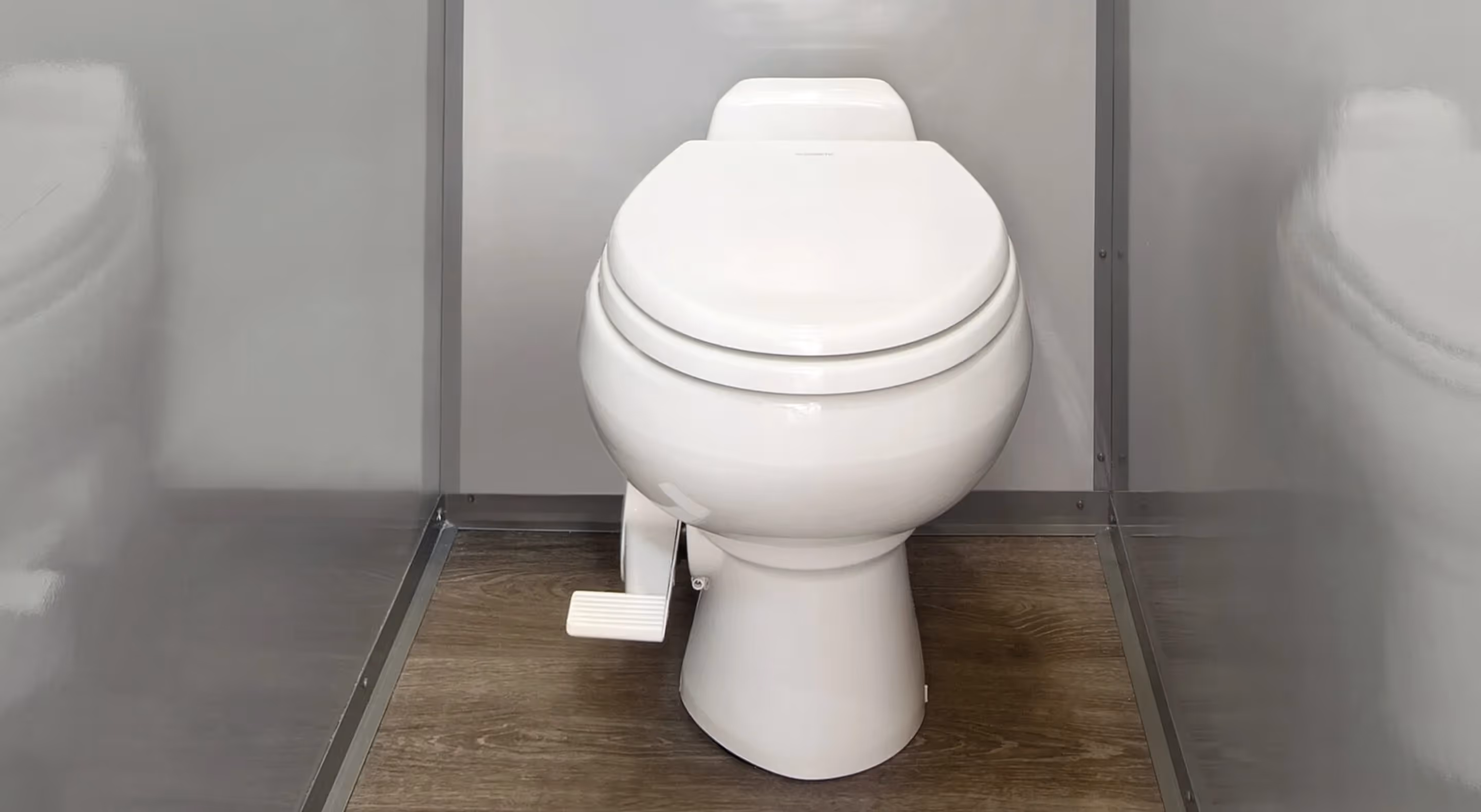 Water protection and odor control is provided by a patented roof made with Over Armor ™, using seamless materials for the interior and exterior walls and floor surface, and installing a polyethylene tank with bottom sump and side wash port. Together, these features create a water-tight trailer and odor-free tank when cleaned properly.