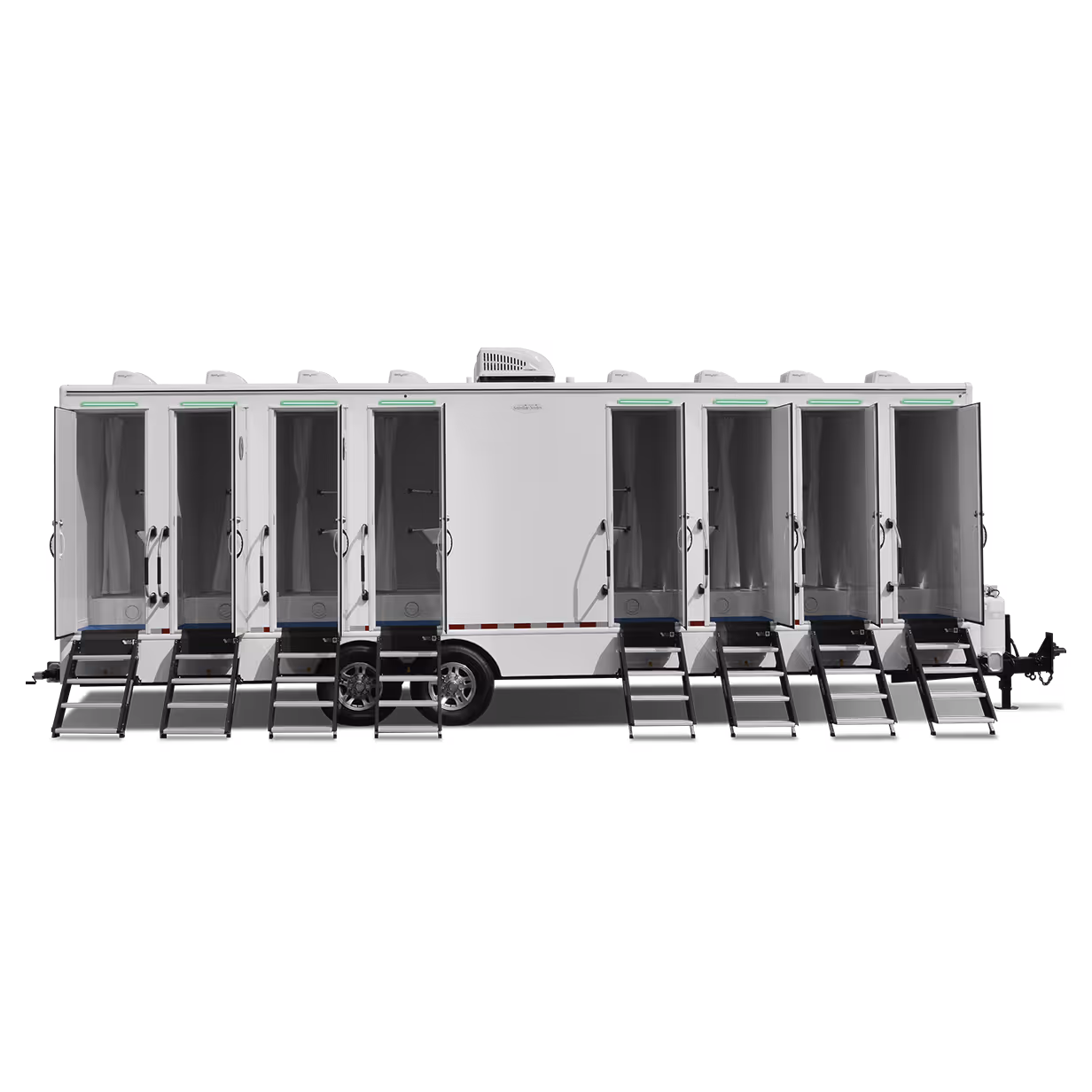 This Beautiful 8-Door, 8-Station shower trailer is the most private shower trailer on the market. Each shower has its own access and temperature control giving each user complete privacy and comfort.