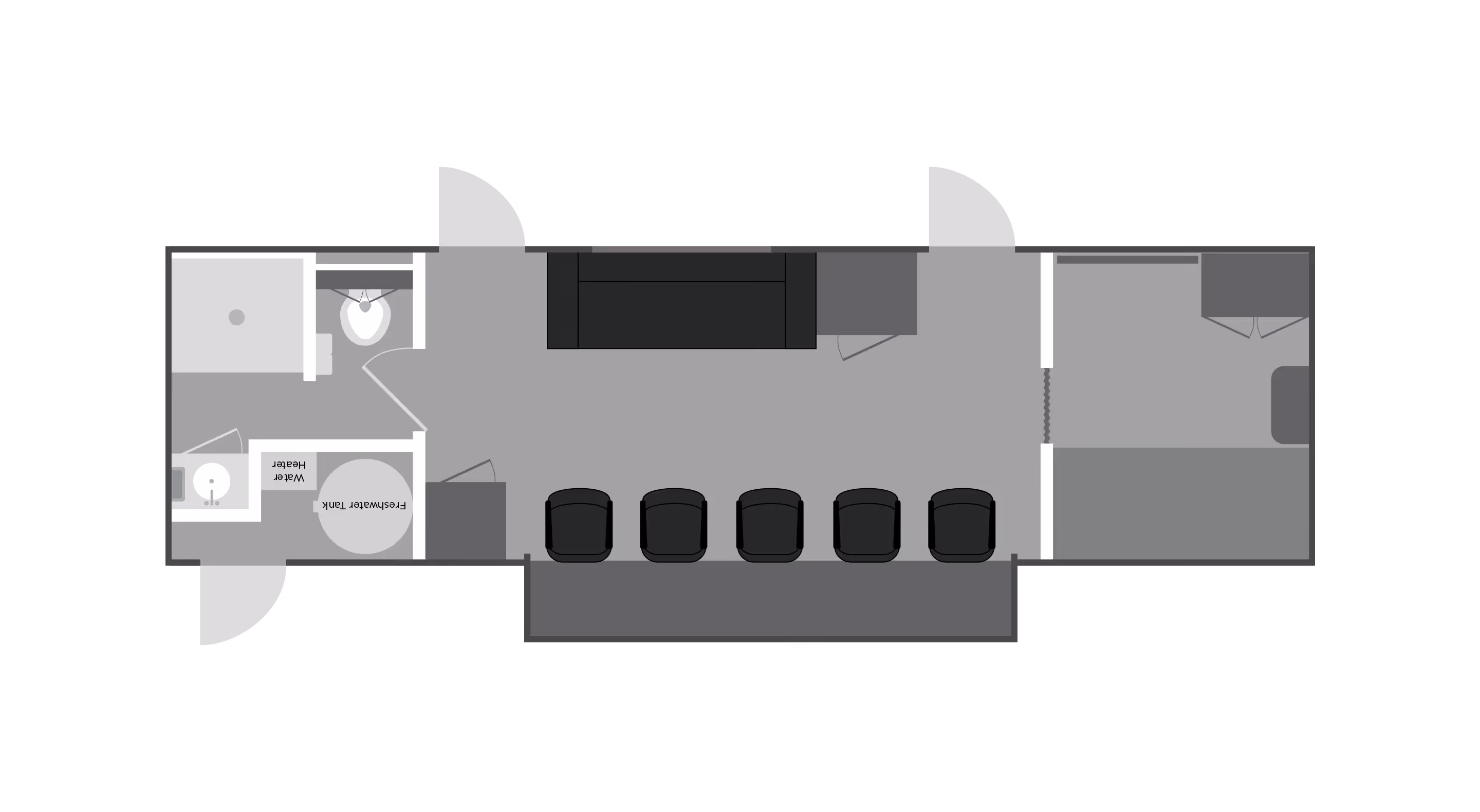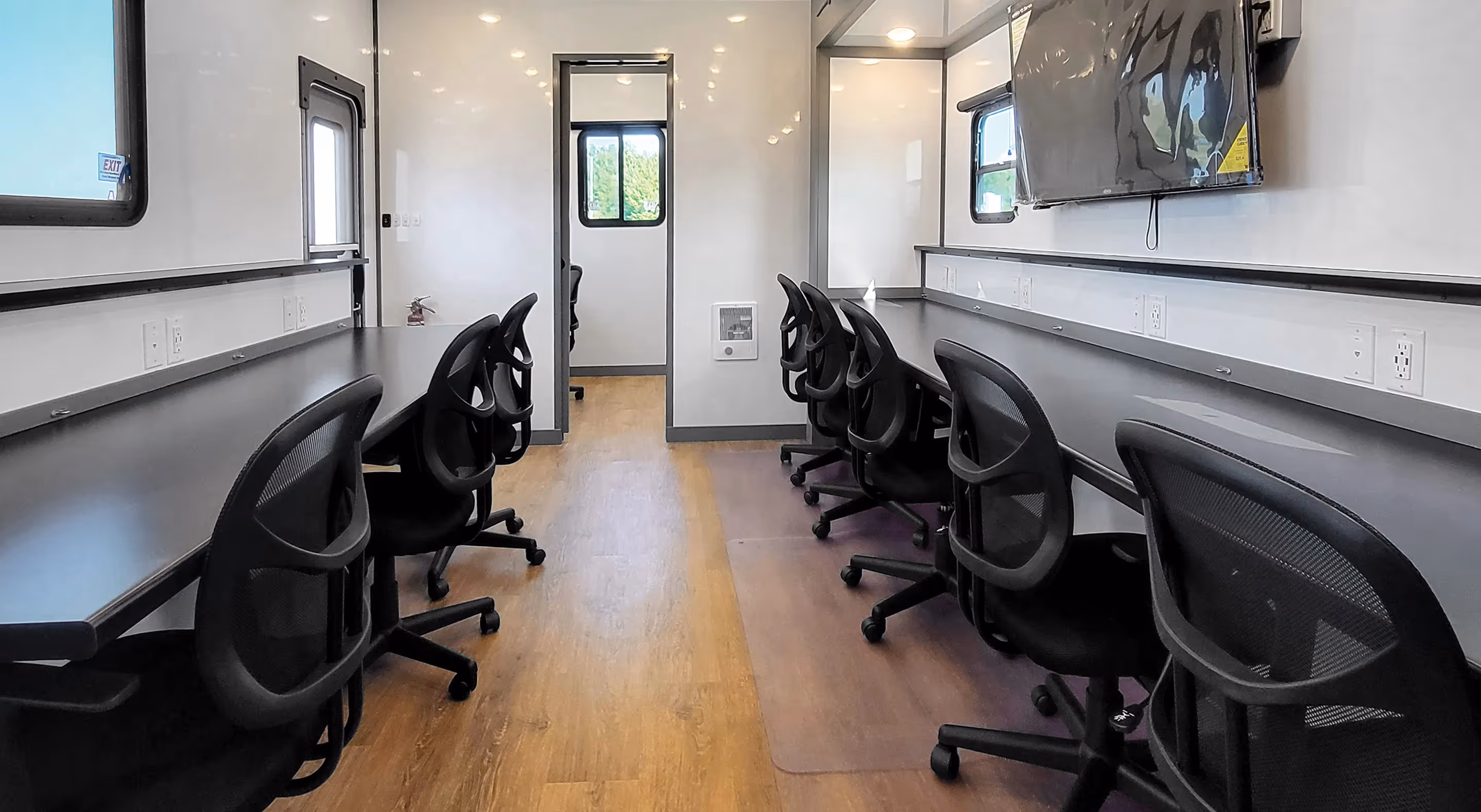 The Satellite Suites Command Center is an all-in-one solution for businesses that require a flexible and mobile workspace. It offers a safe and comfortable place for your crew to work, sleep, eat, and relax, regardless of where your site is located. With the Command Center, you no longer have to struggle to find a hotel for your crew in remote locations like man camps, outdoor concerts, oil fields, or film sites. This practical solution is ideal for companies seeking efficiency and security, especially for natural disaster clean-up efforts and construction sites. It features a roomy 13’ slide-out that contains five workstations with charging and connectivity, sleeping for up to 5, a full bath with a large shower, refrigerator, microwave, couch, and a 50” TV/monitor.