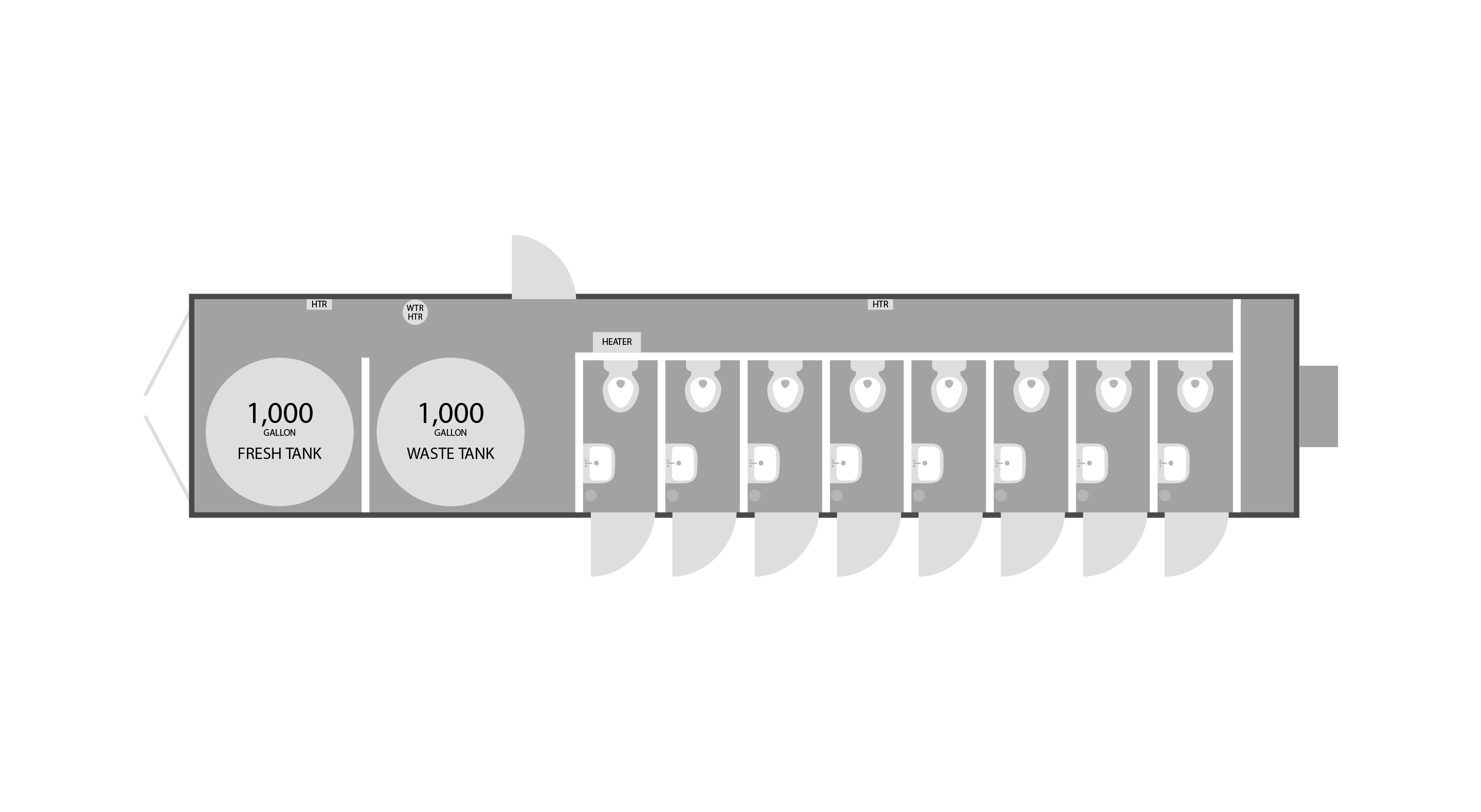 For long-term commercial projects, the Satellite Suites 40’ Container Restroom is the ultimate solution. Its modern design and stylish interior provide a welcoming atmosphere for users, while the massive 1,000-gallon freshwater and 1,000-gallon wastewater tanks ensure up to 6,000 uses before needing service.