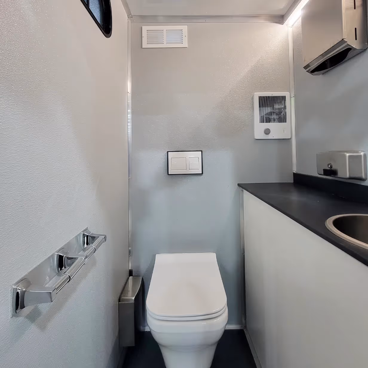 The Brick Connect by Satellite Industries delivers a clean, comfortable, and practical solution for portable sanitation needs. Compact yet robust, this unit features a wall-hung flushing toilet with a macerator pump for effective waste management, complemented by a built-in handwash basin and small countertop. The technical compartment at the rear simplifies maintenance by offering straightforward connections to water, electricity, and wastewater disposal systems. Fully insulated with integrated heating, ventilation, and LED lighting, the Brick Connect ensures user comfort regardless of location. Its easy to transport and compatibility with forklifts, cranes, and pallet jacks making it an ideal choice for construction sites, outdoor events, and temporary facilities.