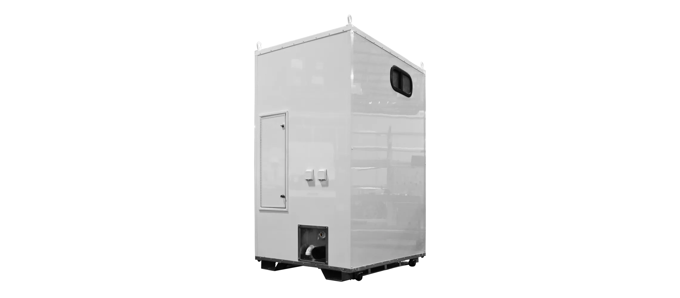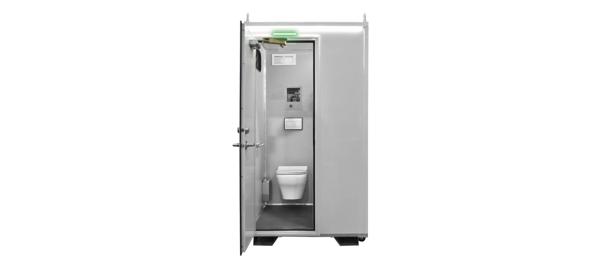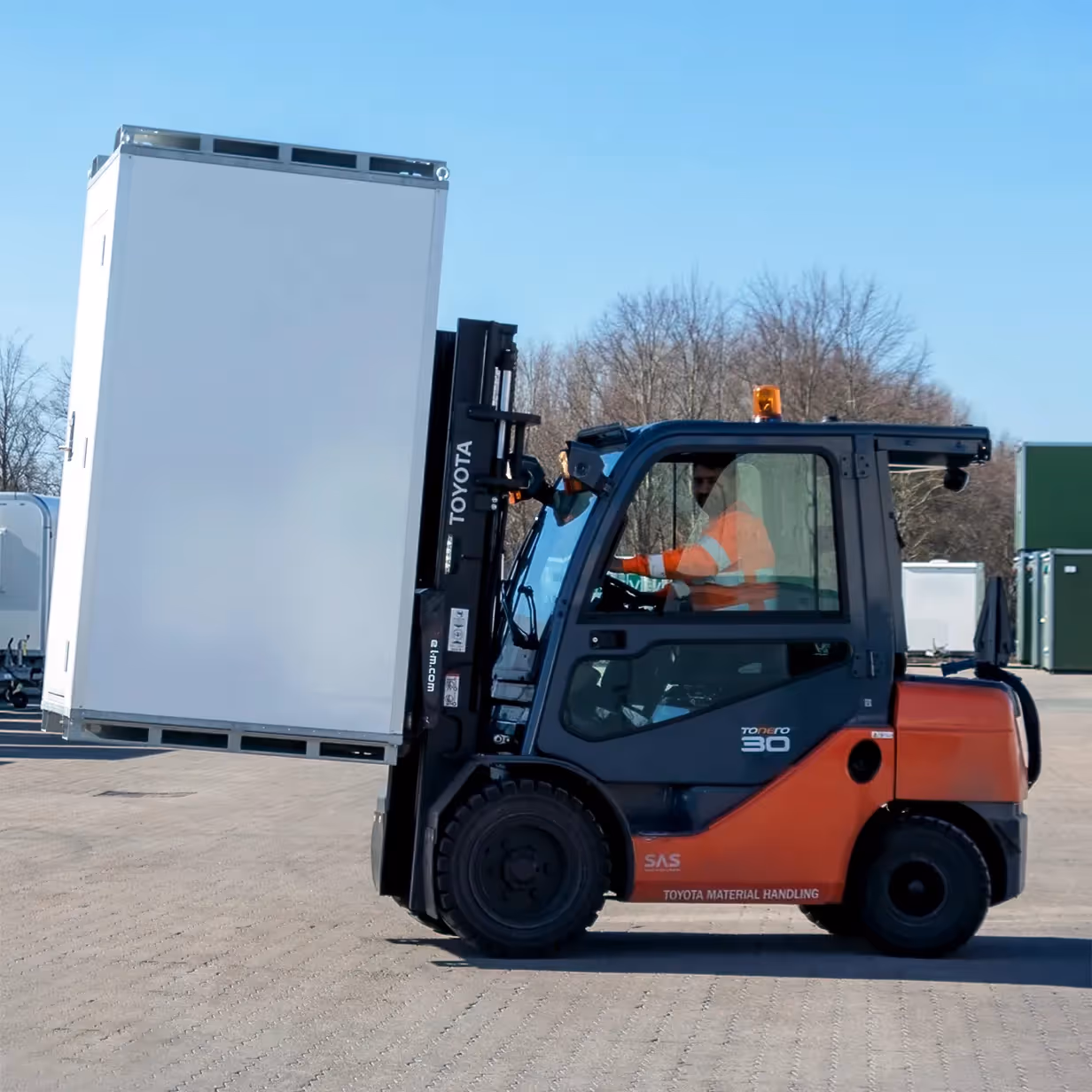 A simple and flexible toilet solution. It is easy to transport and can be stacked to save storage space. It can be moved with a pallet lifter, truck, telescopic handler or crane.