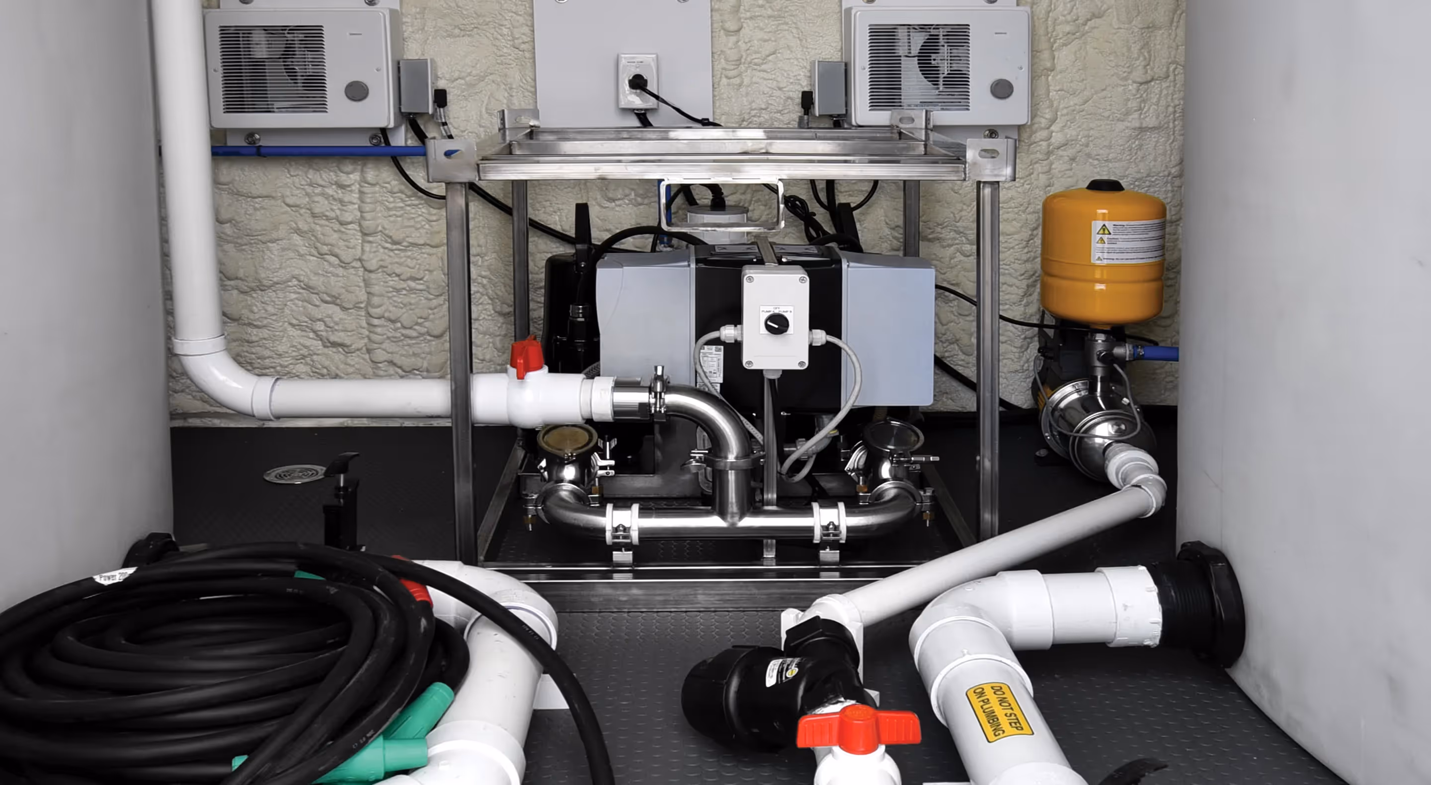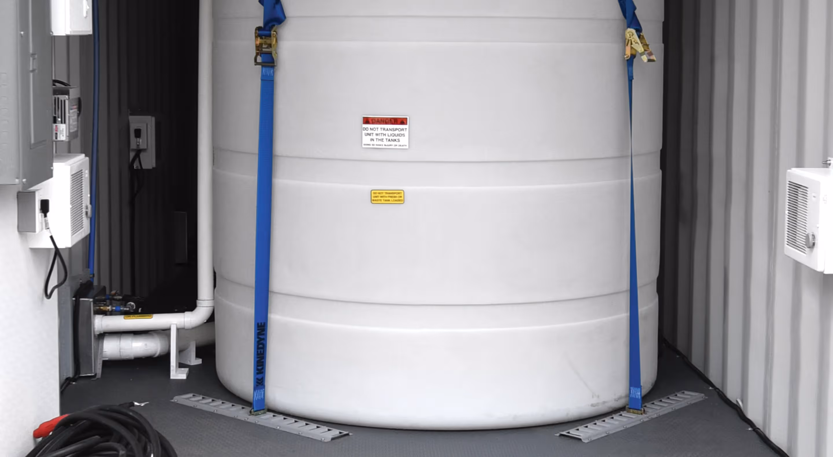 The Container Pump House is your powerhouse for largescale operations. Need extra freshwater? Need more waste capacity? No problem. With industrial-grade pumps, it moves water fast and evacuates waste effortlessly, keeping operations running smooth and stress-free.