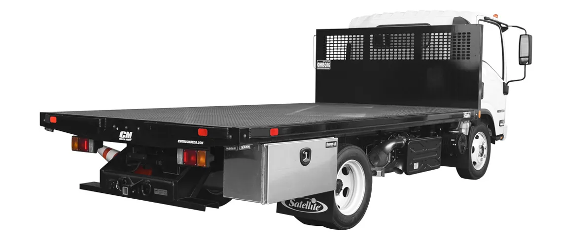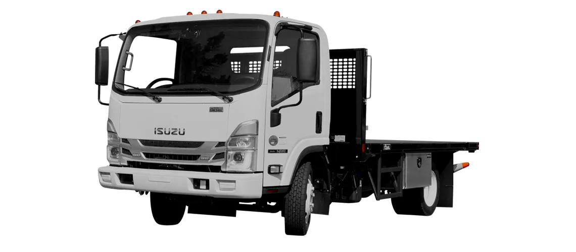 Satellite's Fence Truck comes with an 8x12' bed outfitted with two stainless steel cabinets, a built-in step ladder and strobe lights on all sides making this truck highly visible and efficent when in the work zone. The Isuzu's chassis’ tight turning radius makes maneuvering around construction sites, events, and natural disaster areas where mobility is limited a breeze.