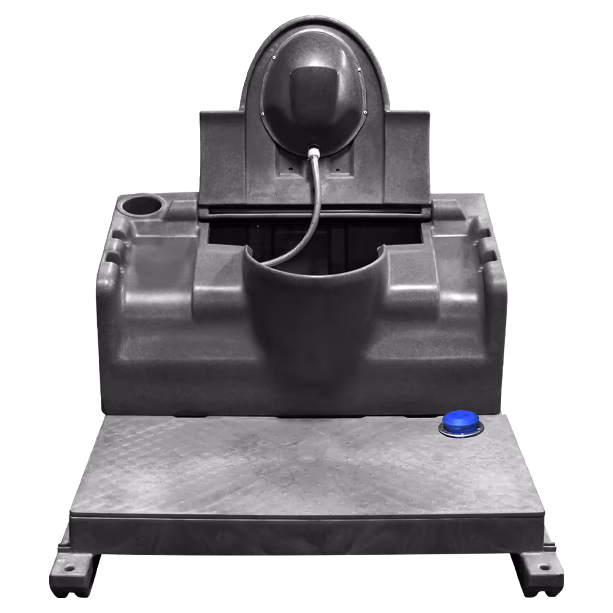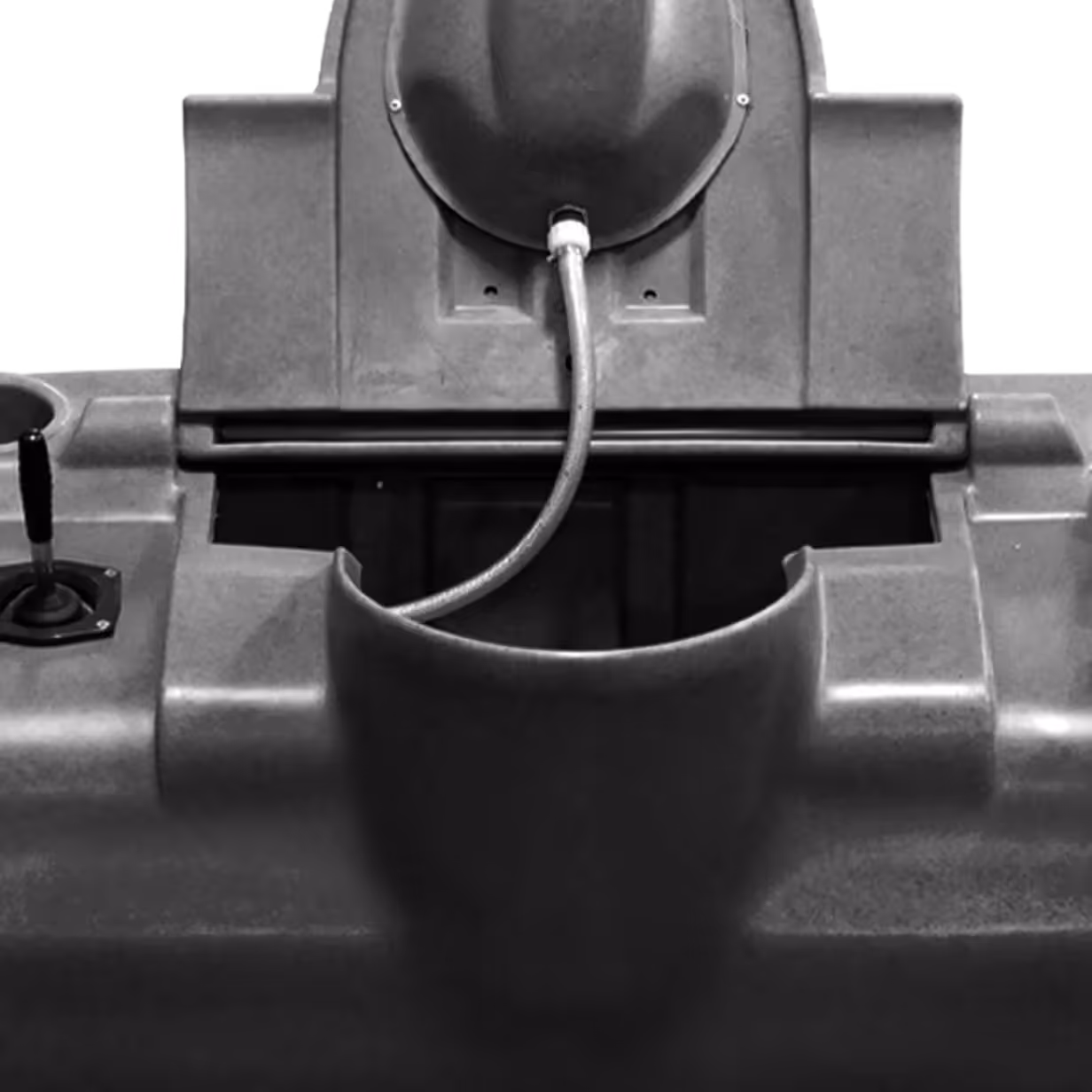 Experience the convenience of a home-like restroom in a portable setting with Satellite's Flip-Top tank. Equipped with a powerful nozzle flushing system, this unique feature is operated by a low-maintenance hand pump installed on the waste tank deck or foot pump installed into the plastic rotomolded skid. Utilizing fresh water from the Pro-22 sink to flush the waste, each user can enjoy a comfortable and hygienic experience.