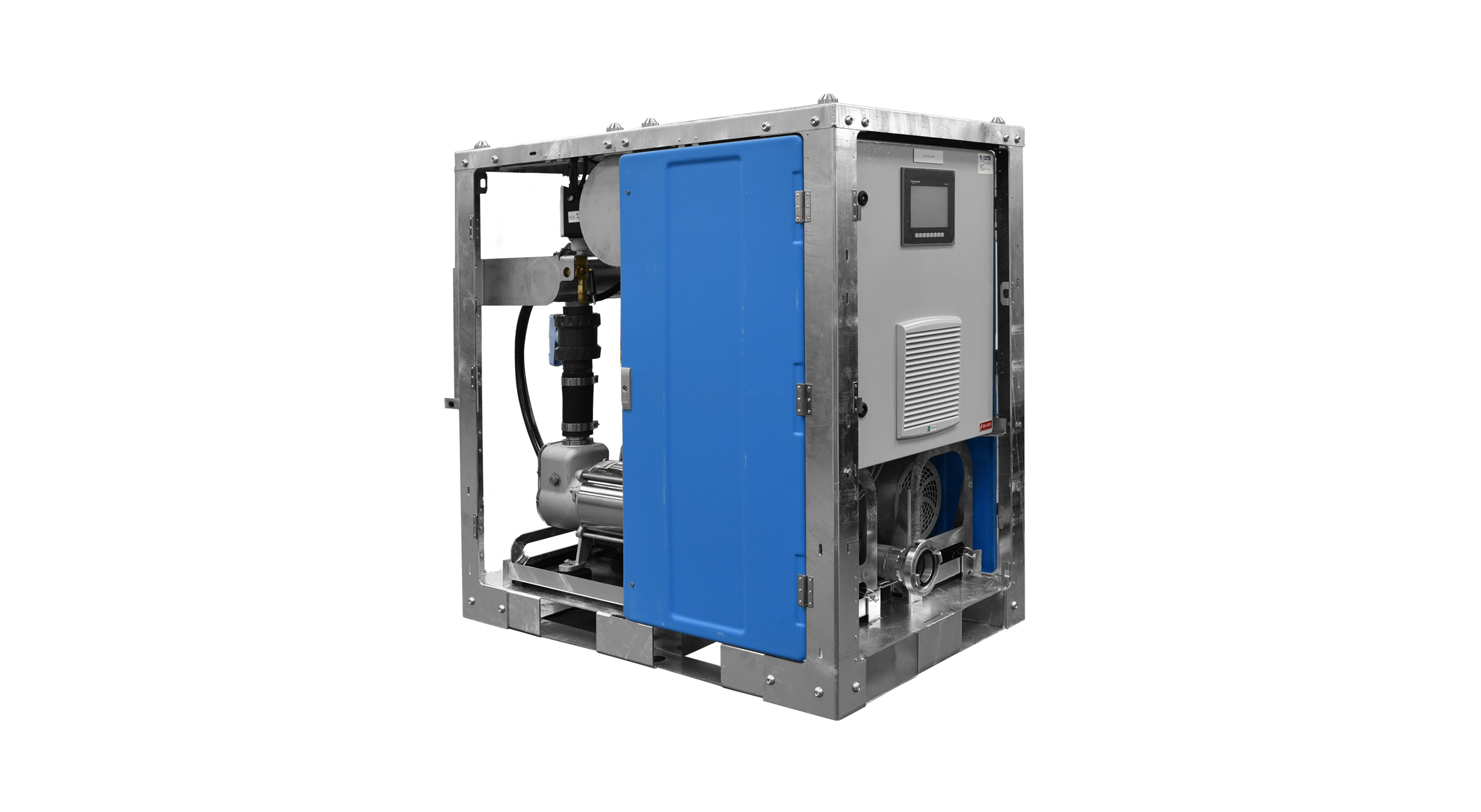 7" touchscreen interface delivers seamless communication across the Flow Control, Water Supply, and Transfer Tank units.