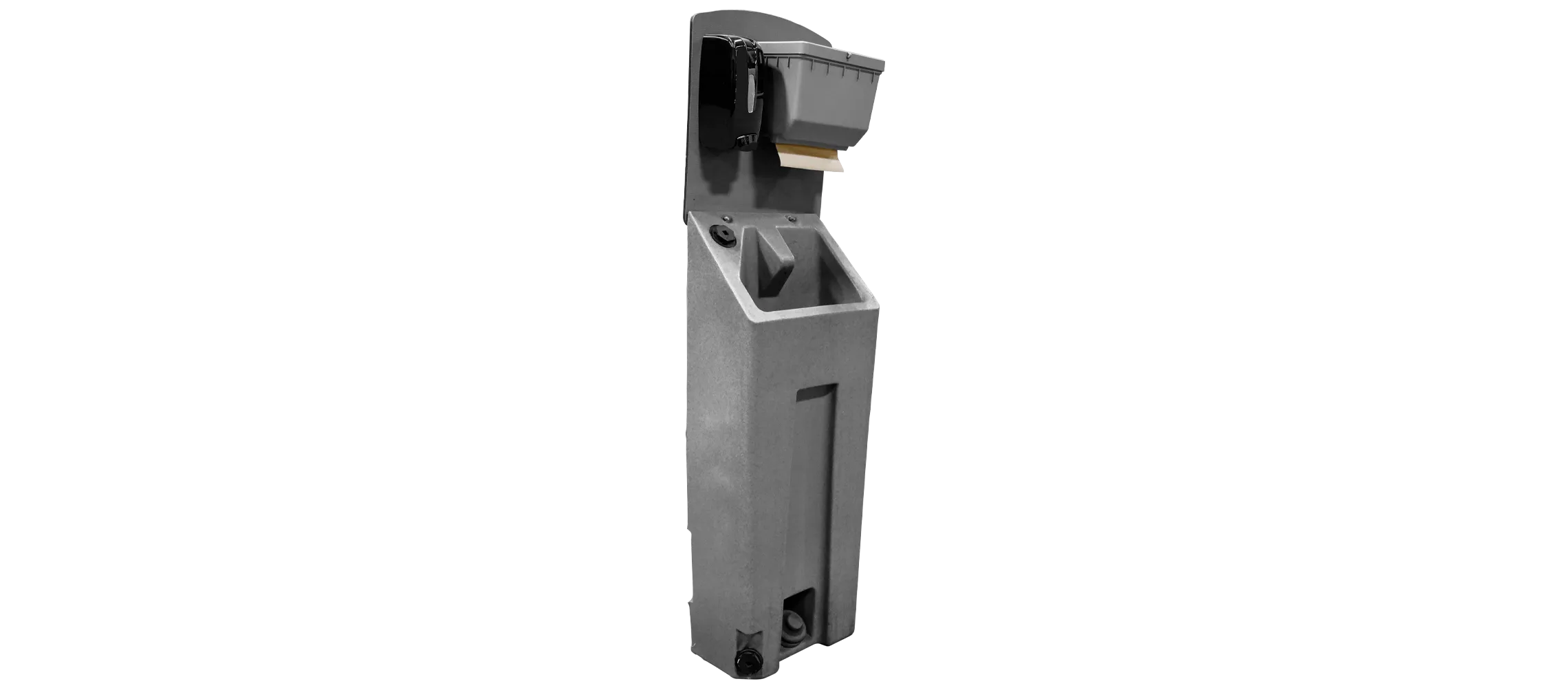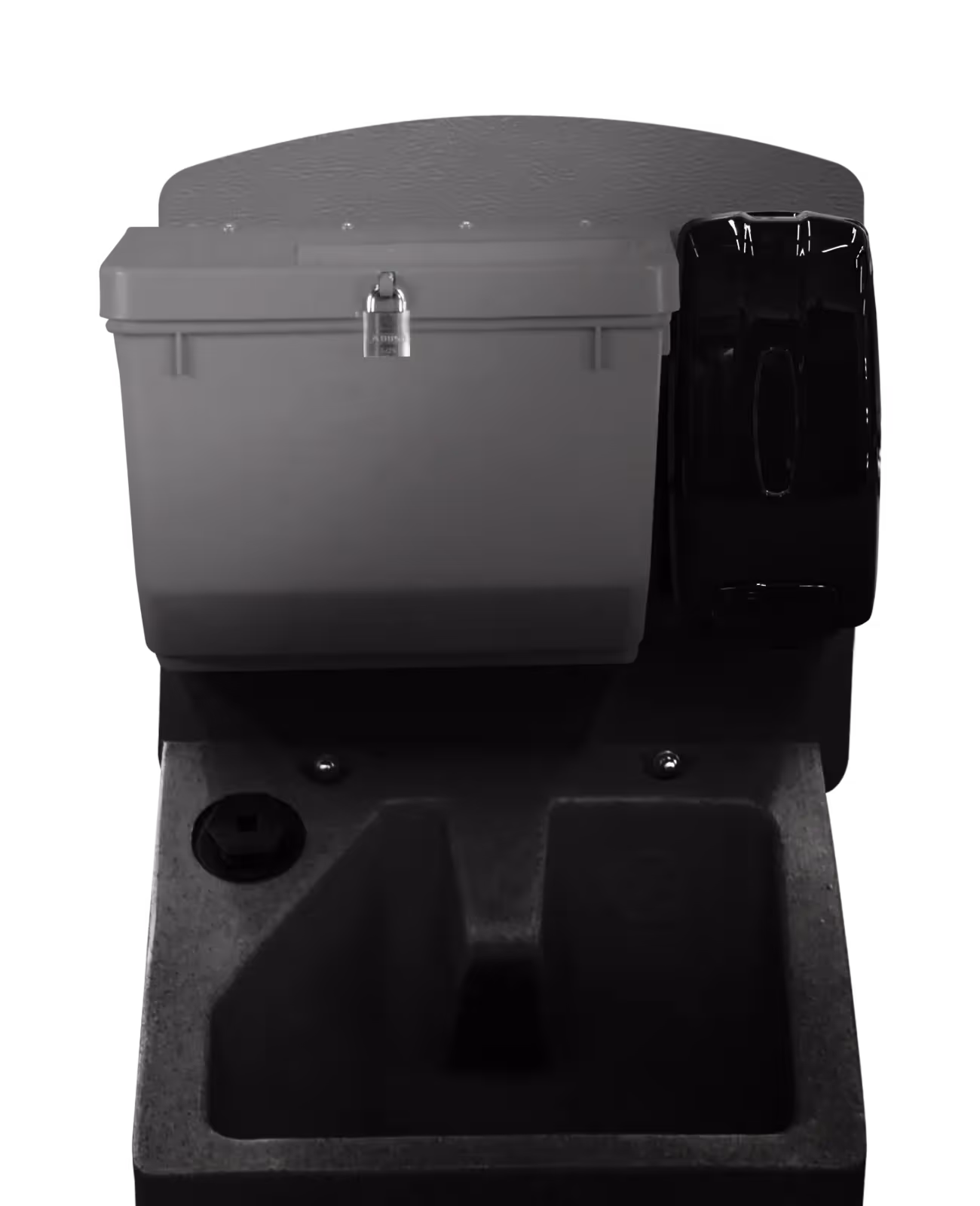 This rugged internal hand wash station requires the removal of the portable restroom urinal, but gives the user 22-gallons of fresh water capacity. In situations requiring a fresh water flushing system, the Pro-22 serves as the unit of choice for both hand washing and as the fresh water reservoir for the flushing waste tank.