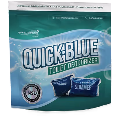 Along with its increased solubility, QuickBlue™ Summer’s effervescent action disperses the contents to create a deep blue, odor-fighting solution.