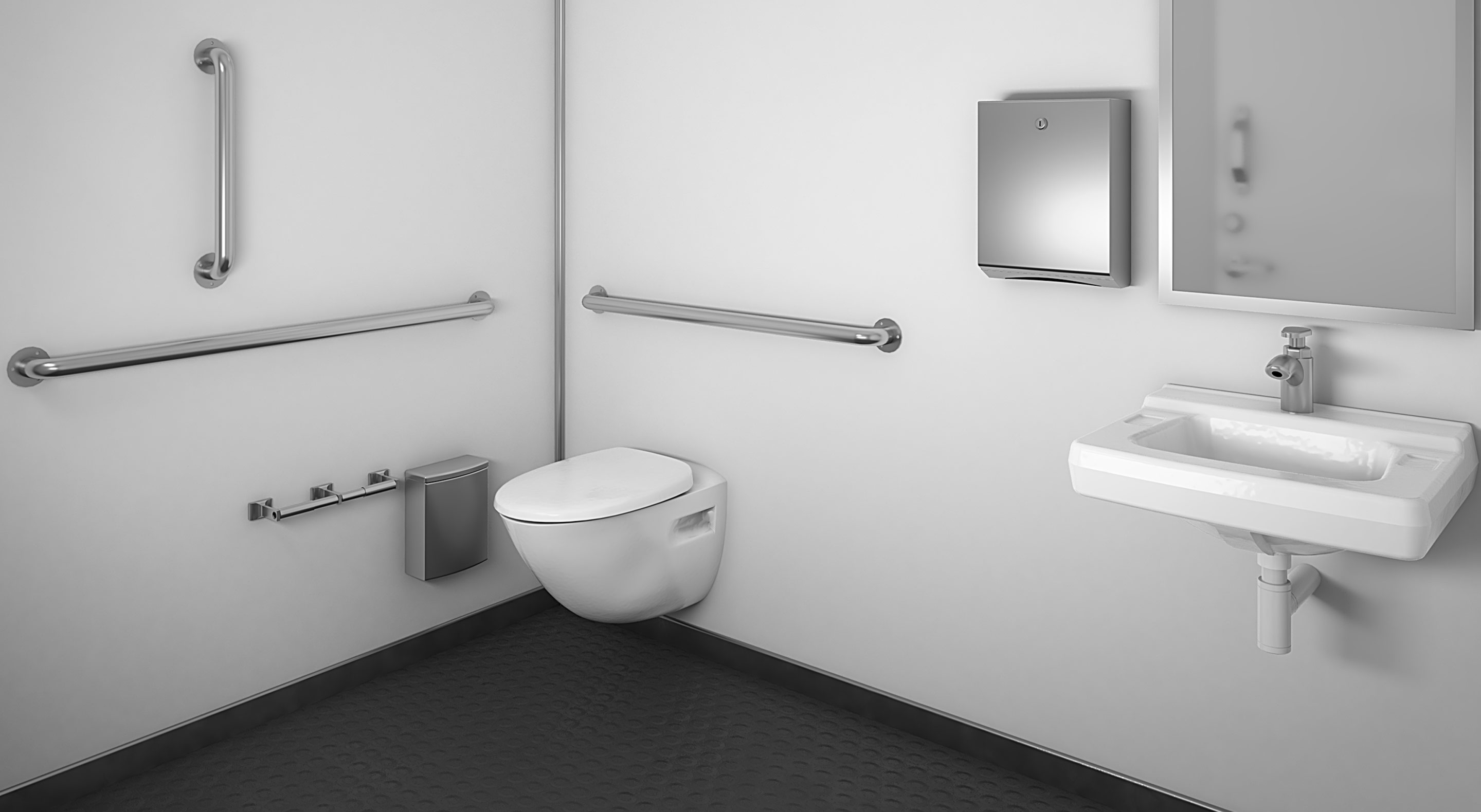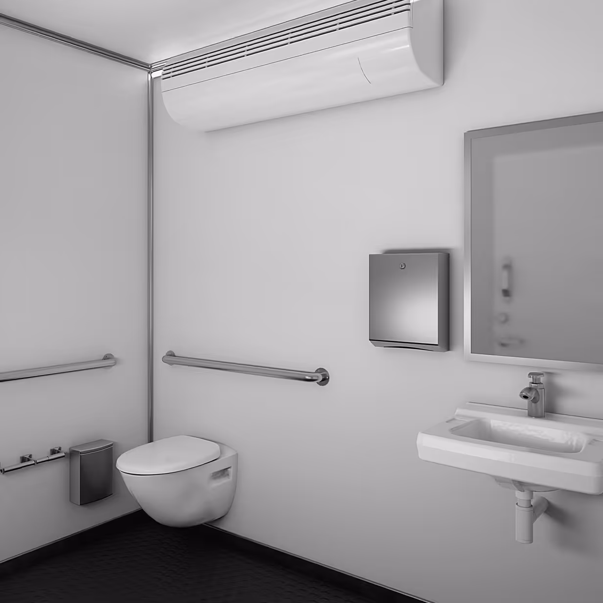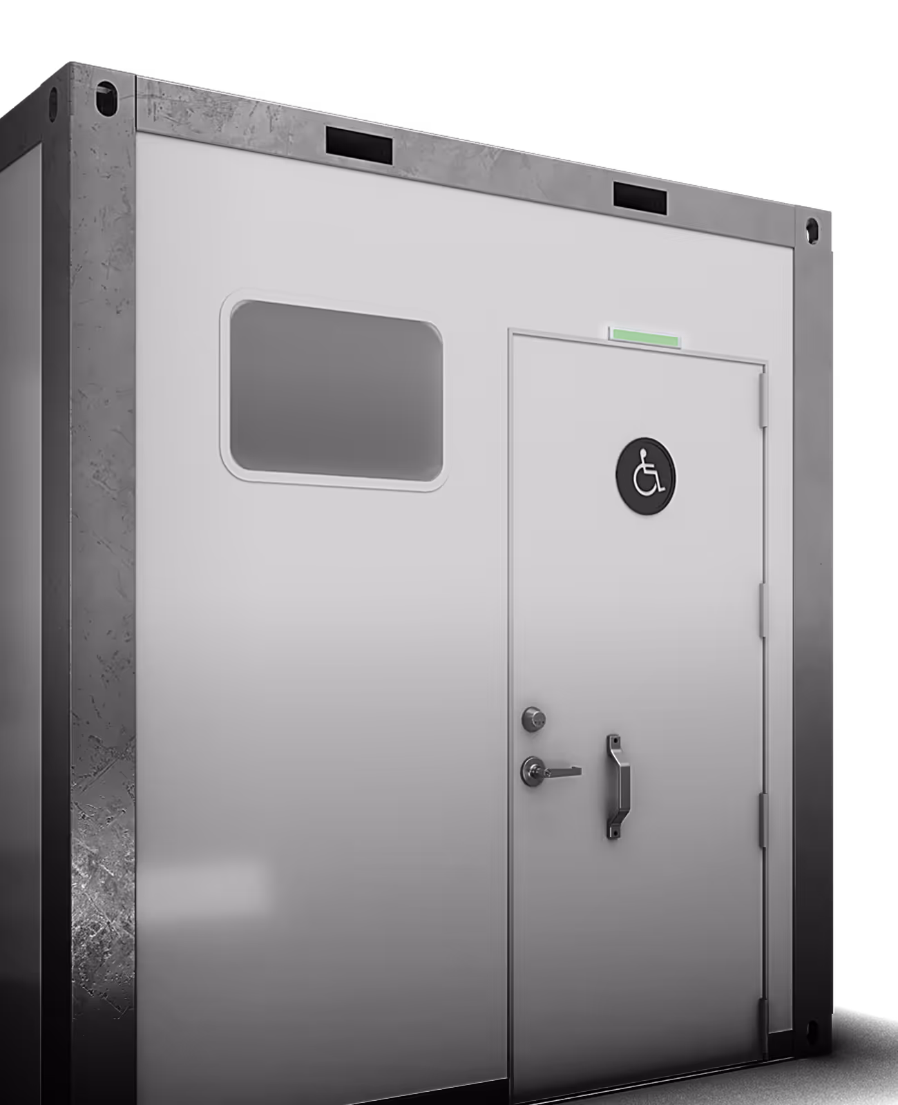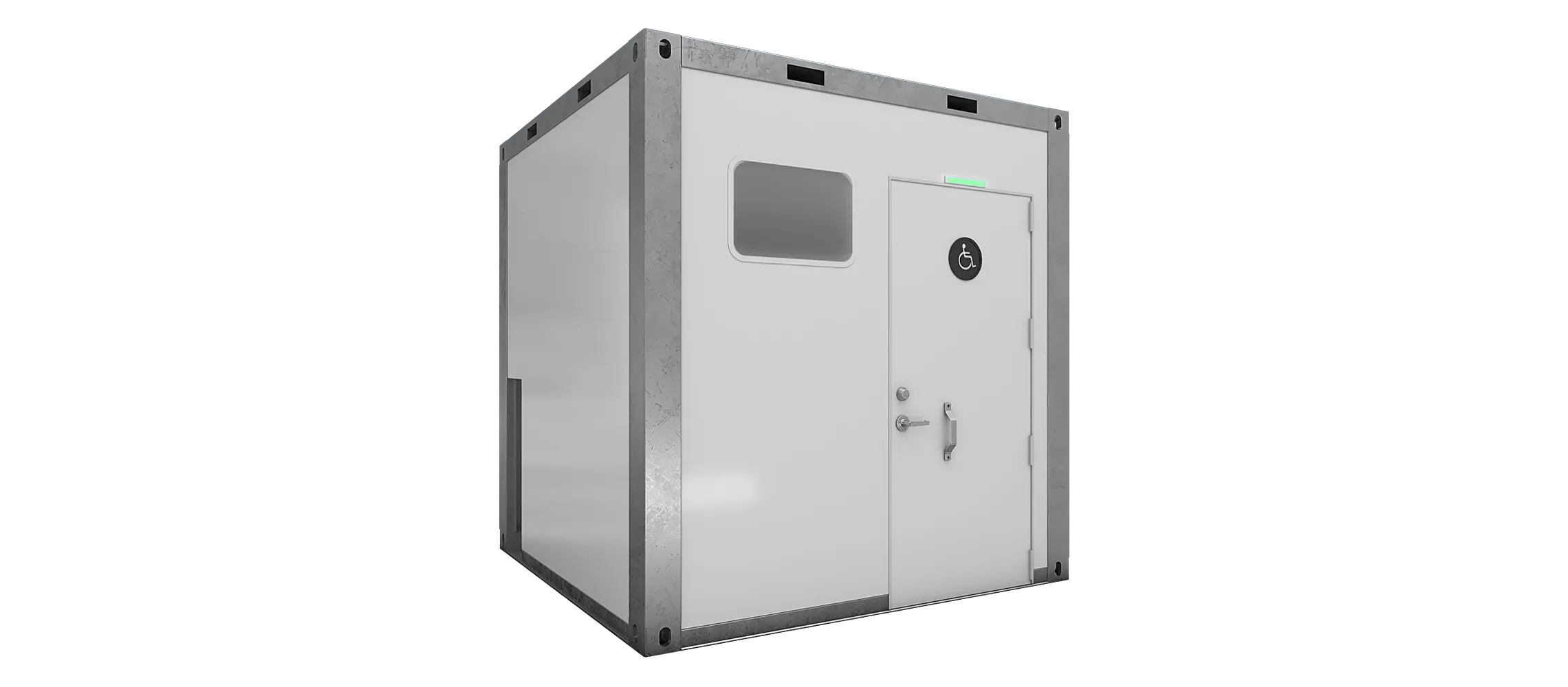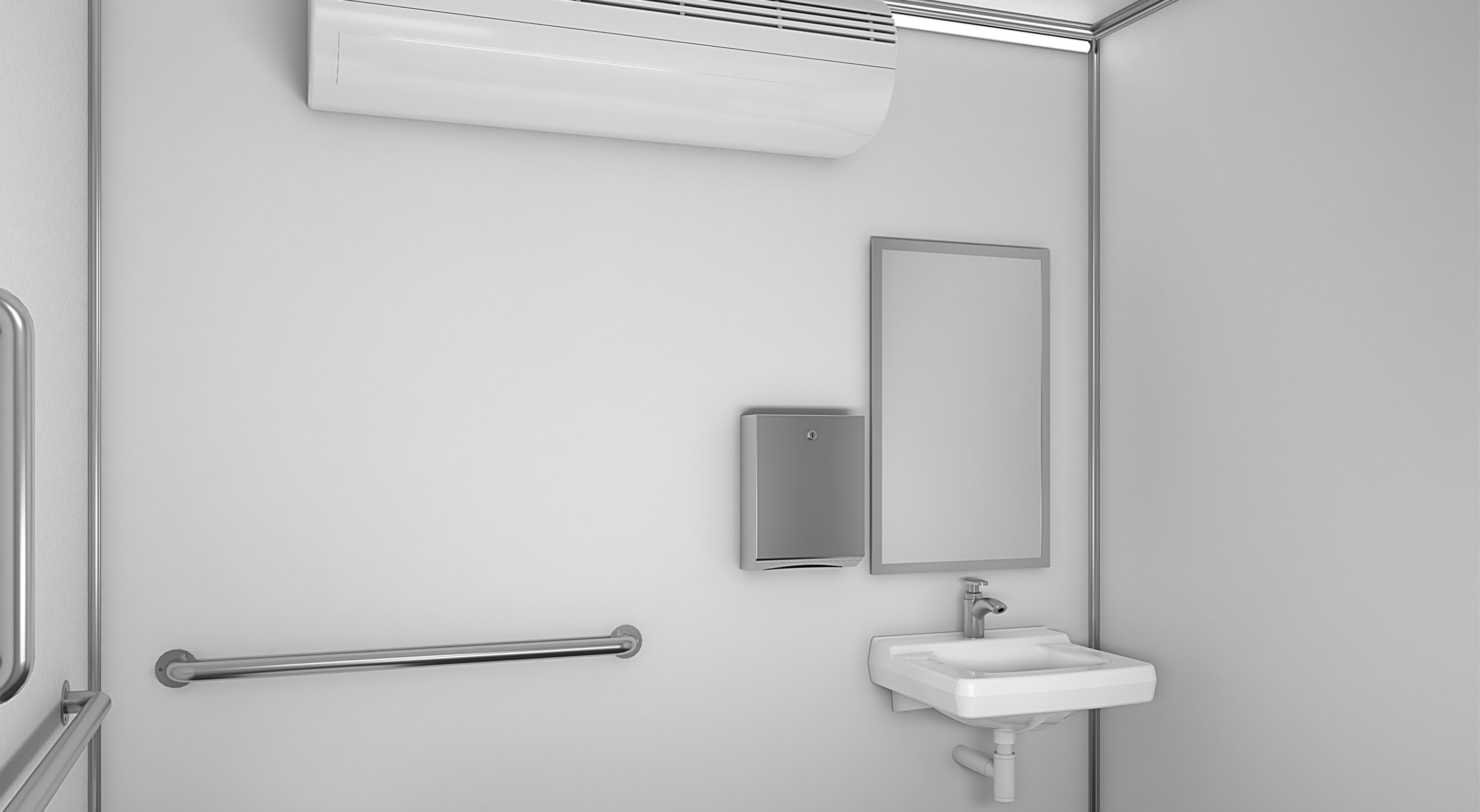 A spacious, fully accessible ADA toilet module designed for comfort and ease of use.