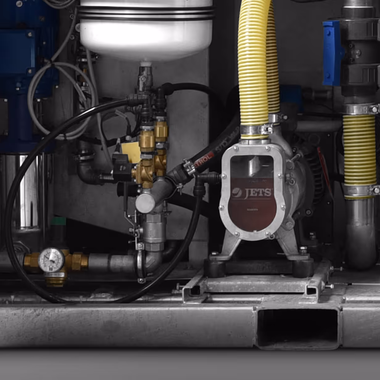 The heart of the Satelite’s Vacuum Technology Division is the Vacuum Tech Module. The tech module is equipped with vacuum pumps which run autonomously. Sensors measure the vacuum levels in the waste piping system of all connected toilets and Satellite Sanitrax designed electronics fully operated the system. The tech module replaces the old-fashioned pump truck which involved a lot of manual labor to empty the porta potties.