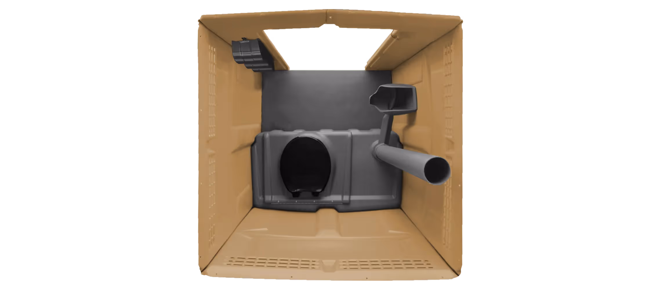 Designed with user comfort in mind, the Tufway boasts a spacious, well-ventilated interior that effectively reduces odors. This is achieved through molded-in wall vents that ensure continuous airflow. The urinal's innovative design drains down the vent pipe, preventing unwanted tank odors from escaping into the cabana. Additionally, the seat is strategically positioned at the furthest point from the urinal, keeping it out of sight and away from odors. For added convenience, a coat hook is provided for hanging purses or jackets. These thoughtful features come together to create a more comfortable and pleasant experience for every end-user.