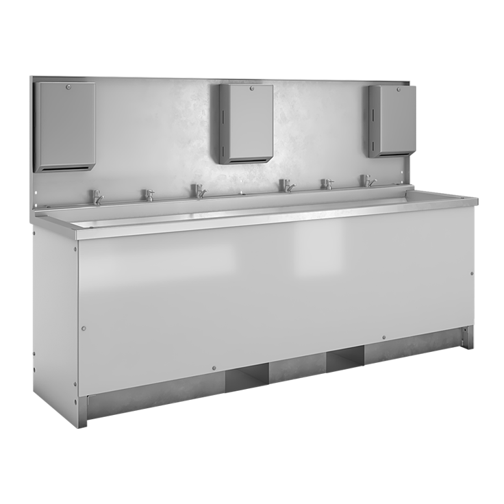 Specialized, self-contained units that provide sanitary hand-washing on site.
